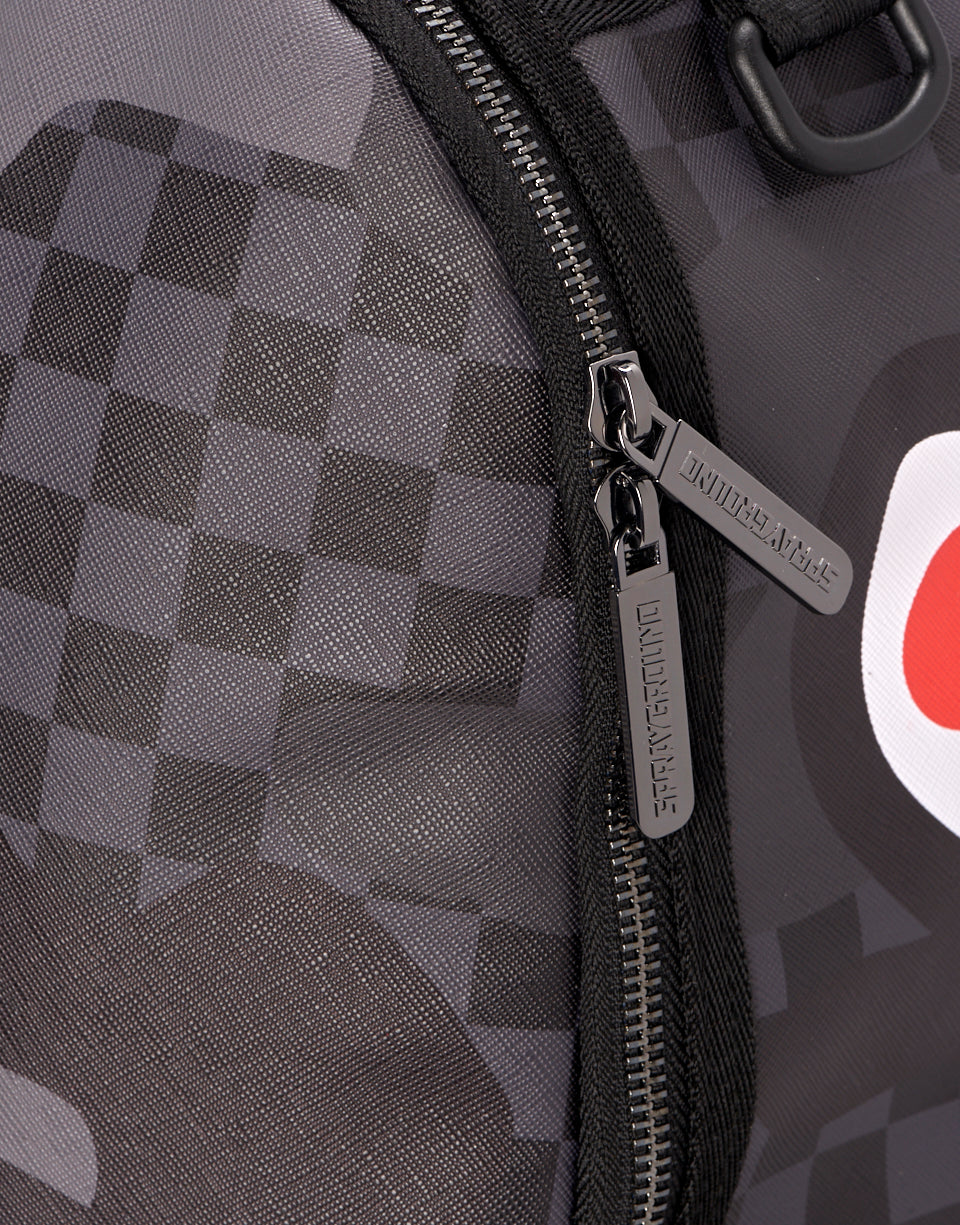 ExteriorDimensions: 18" x 6" x 11.5" • Front zipper pocket • Side pockets • Zippered Stash pocket • Separate velour sunglass compartment • Ergonomic mesh back padding • Adjustable Straps for custom sizing • Gunmetal zippers with metal hardware • Metal "Sprayground Authentic" badge • Slide through back sleeve connects to carry-on luggage to free your hands