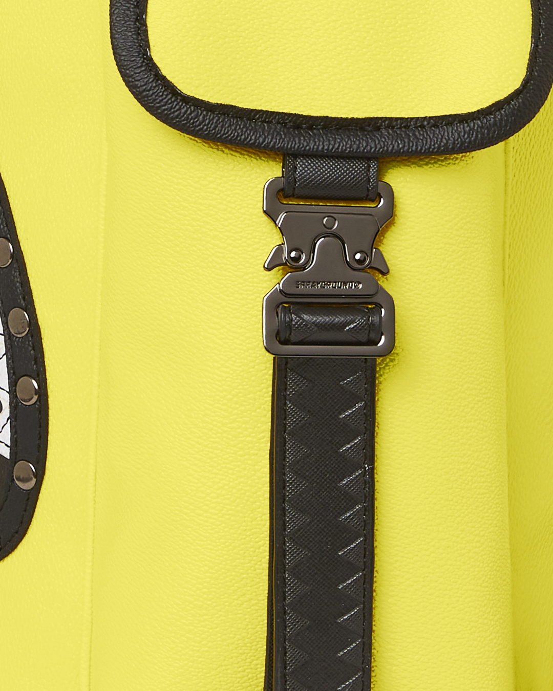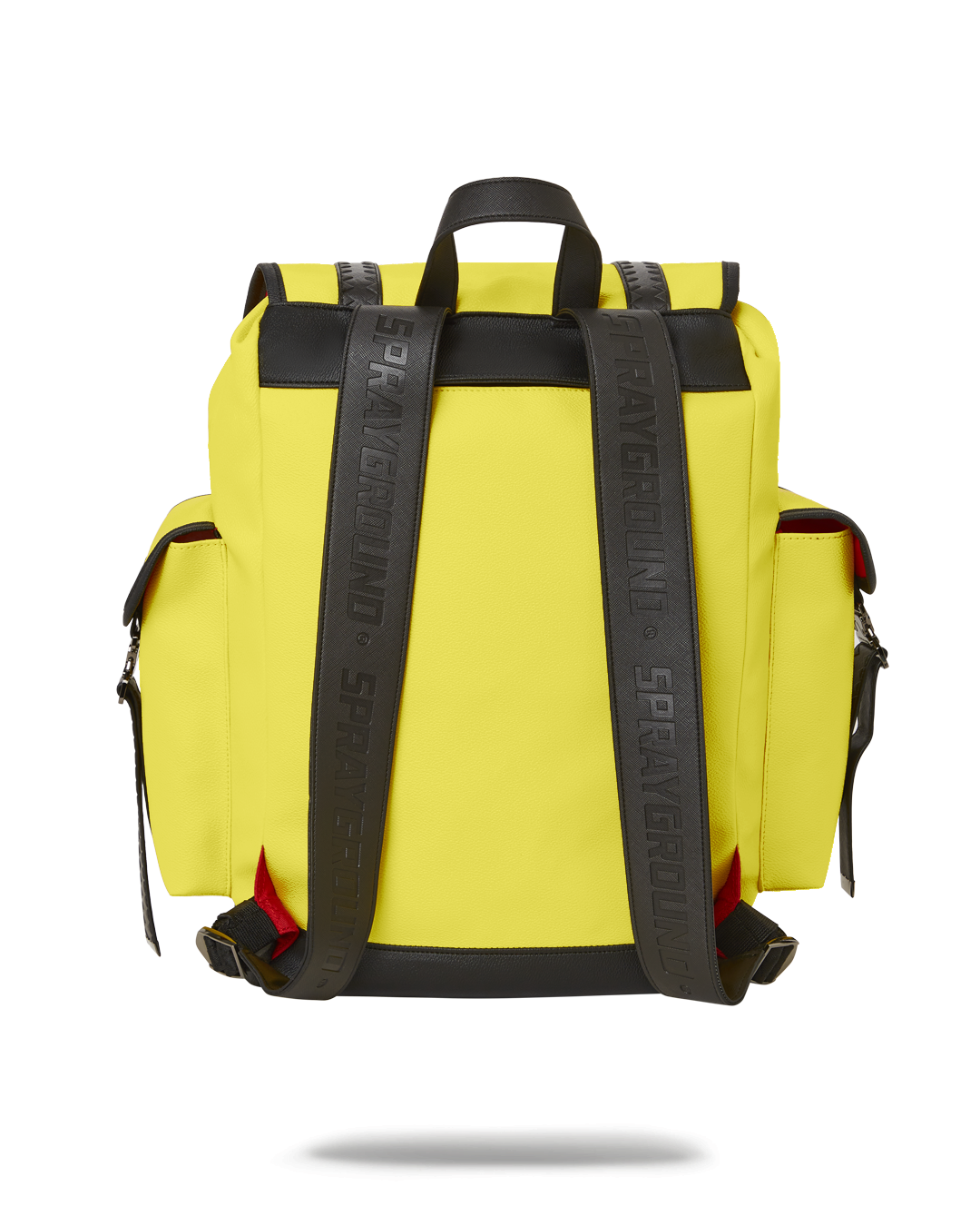 Dimensions: 18" x 6" x 11.5" • Top Flap opening w/ adjustable metal enamel buckles and drawstring closure • Two side cargo pockets with metal enamel buckles and drawstring closures • Zippered Stash pocket • Ergonomic mesh back padding • Adjustable Straps for custom sizing • Embossed logo on back strap