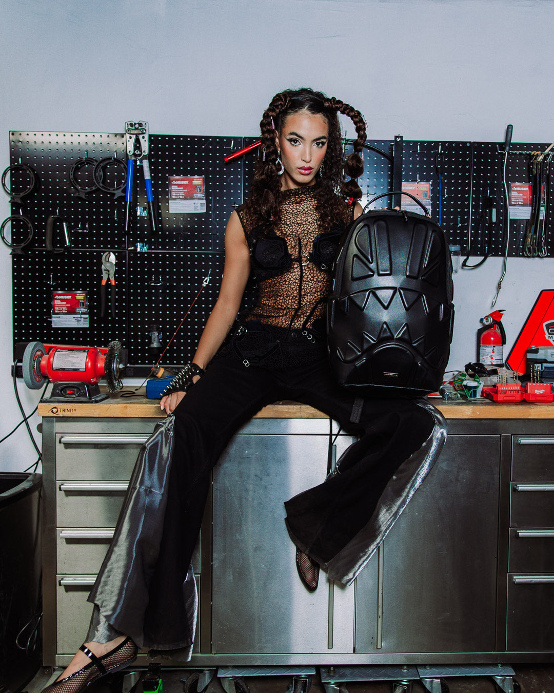 Dimensions: 18" x 6" x 11.5" • Front zipper pocket • Side pockets • Zippered Stash pocket • Separate velour sunglass compartment • Ergonomic mesh back padding • Adjustable Straps for custom sizing • Gold zippers with metal hardware • Metal "Sprayground Authentic" badge • Slide through back sleeve connects to carry-on luggage to free your hands