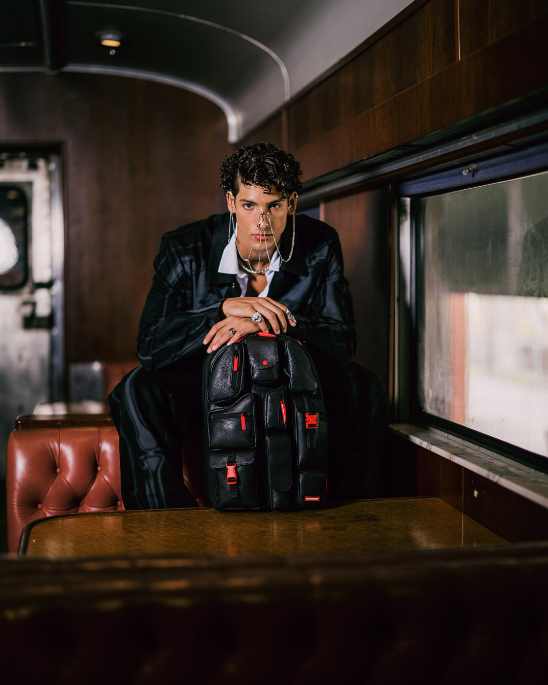 Dimensions: 18" x 6" x 11.5" • Front zipper pocket • Side pockets • Zippered Stash pocket • Separate velour sunglass compartment • Ergonomic mesh back padding • Adjustable Straps for custom sizing • Gold zippers with metal hardware • Metal "Sprayground Authentic" badge • Slide through back sleeve connects to carry-on luggage to free your hands
