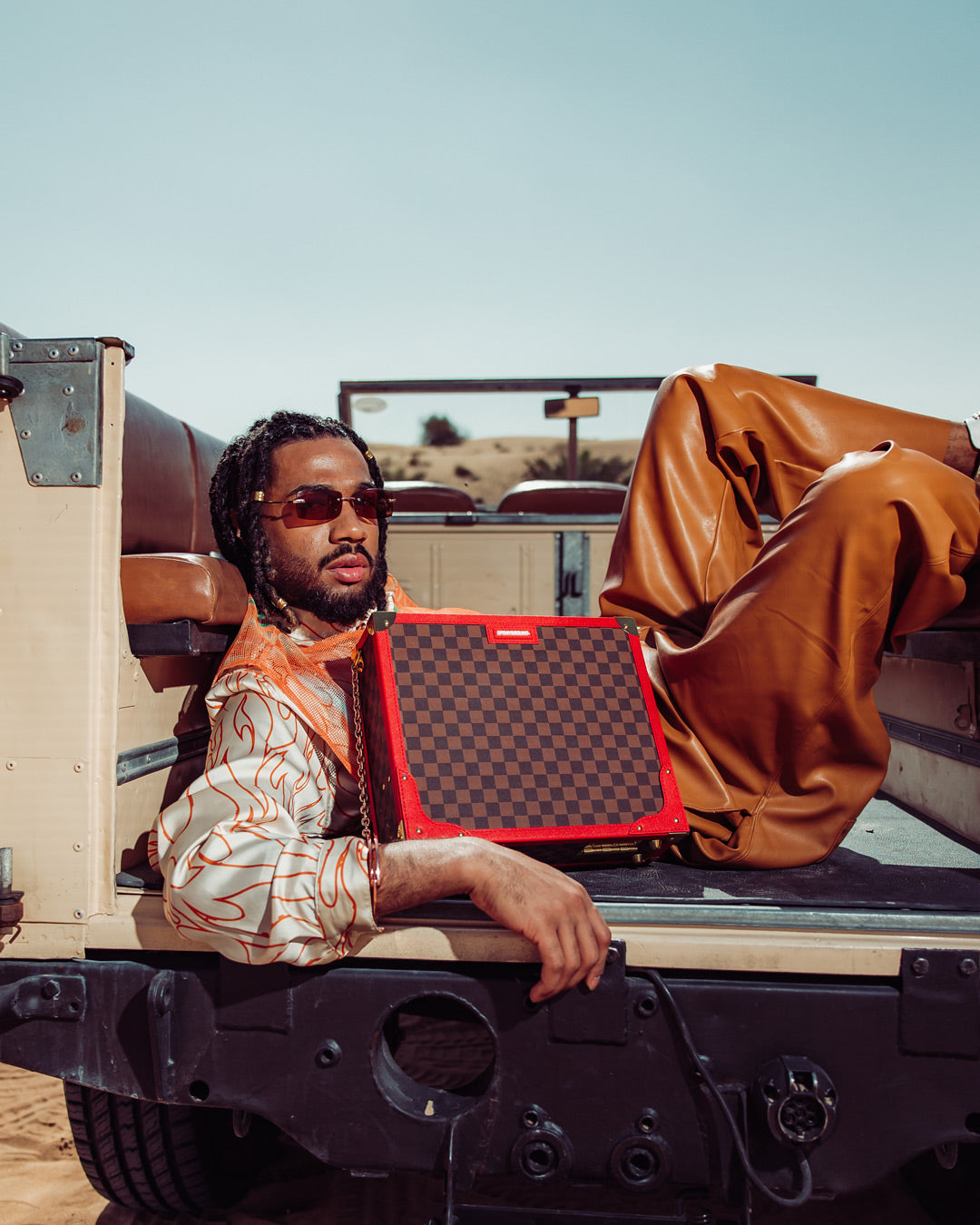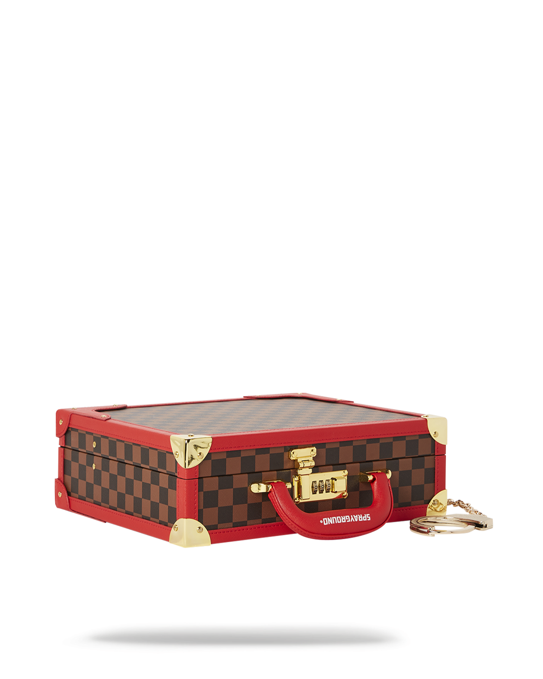Customized Red Satin lining with Embossed Shark logo and Vegan leather trims