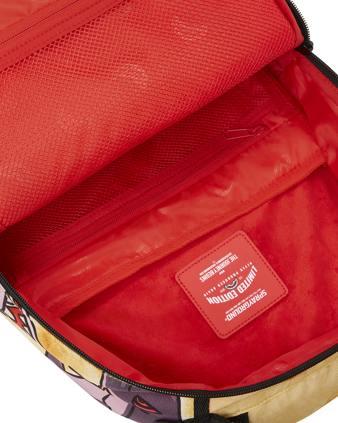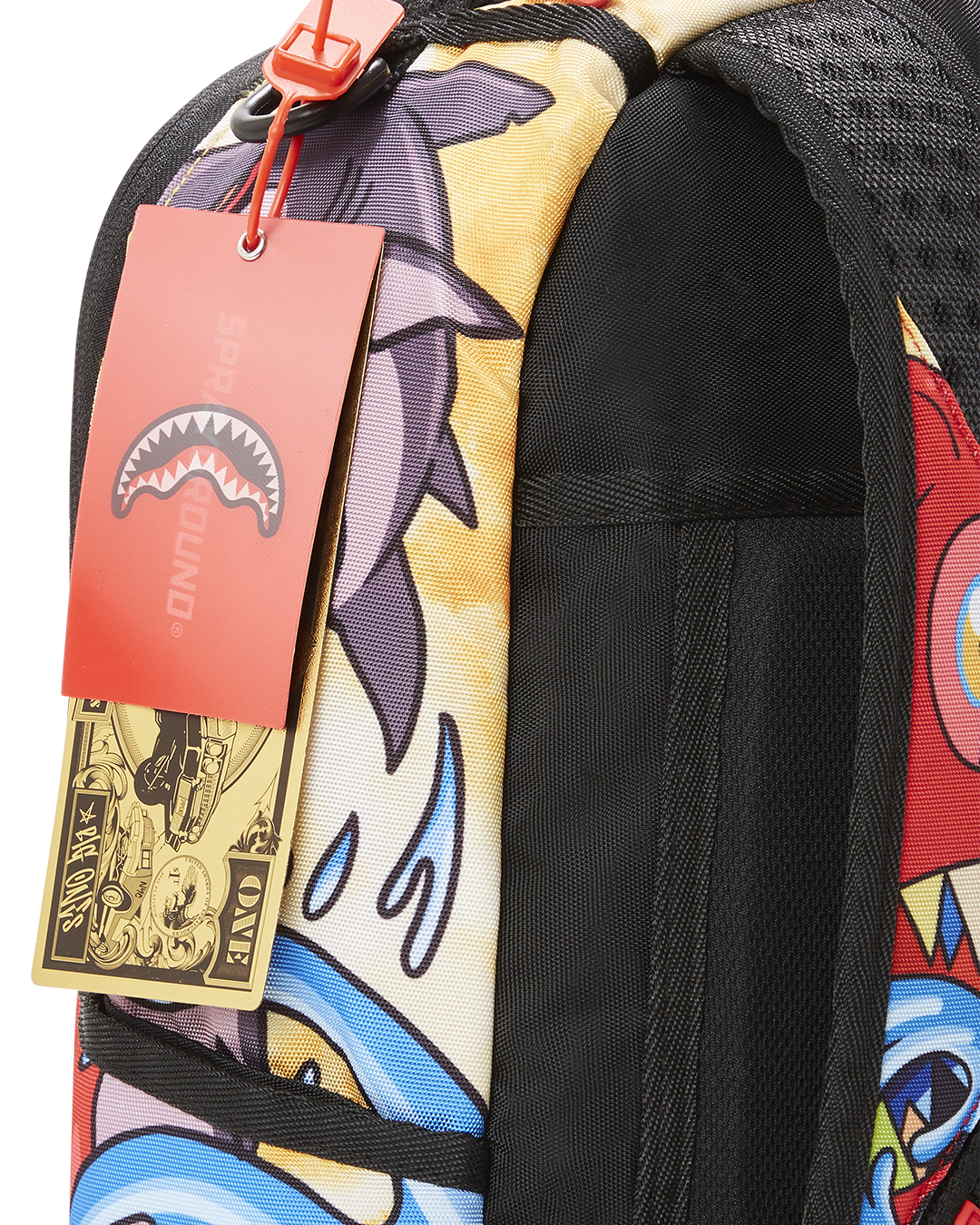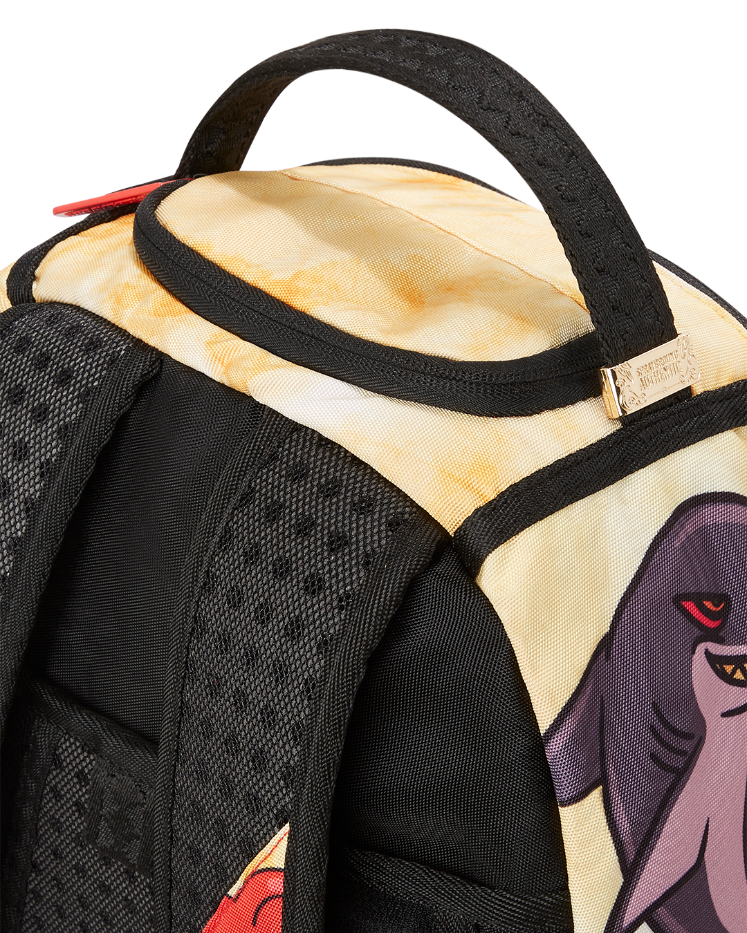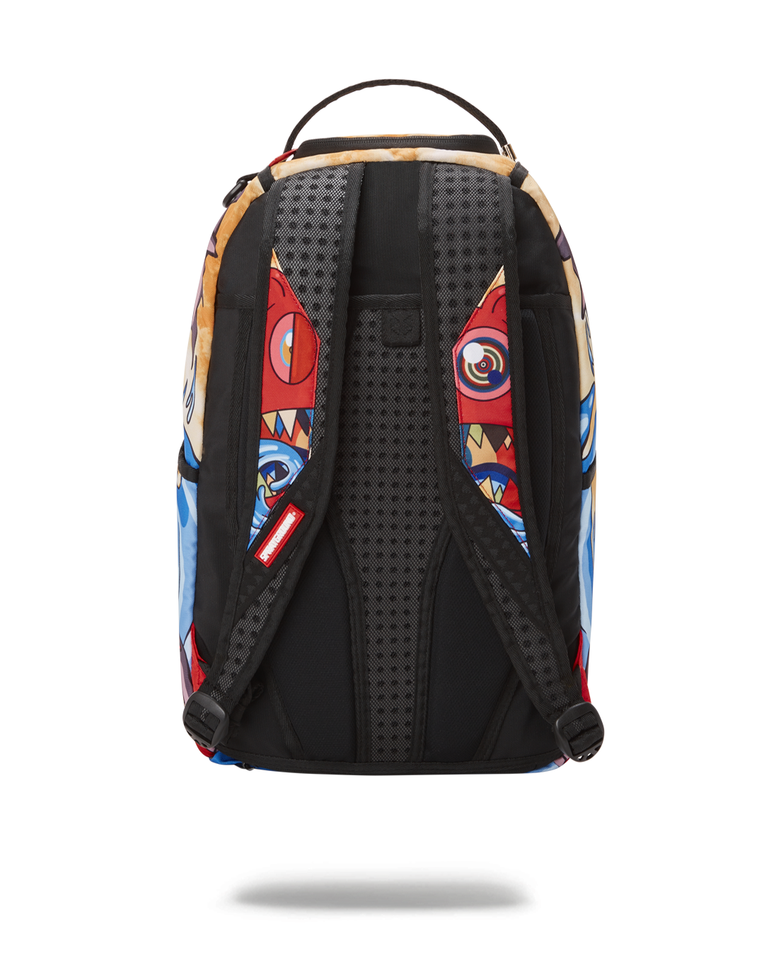 ExteriorDimensions: 18" x 6" x 11.5" • Front zipper pocket • Side pockets • Zippered Stash pocket • Separate velour sunglass compartment • Ergonomic mesh back padding • Adjustable Straps for custom sizing • Green zippers with metal hardware • Metal "Sprayground Authentic" badge • Slide through back sleeve connects to carry on luggage to free your hands