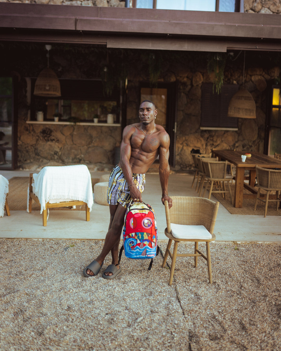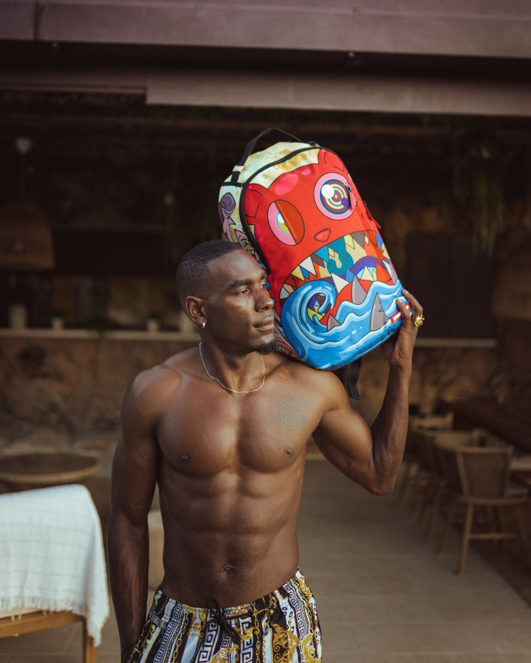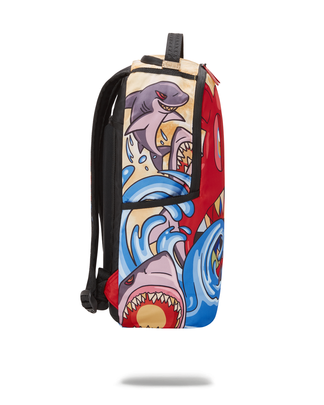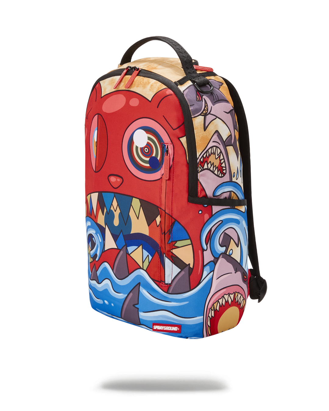 ExteriorDimensions: 18" x 6" x 11.5" • Front zipper pocket • Side pockets • Zippered Stash pocket • Separate velour sunglass compartment • Ergonomic mesh back padding • Adjustable Straps for custom sizing • Green zippers with metal hardware • Metal "Sprayground Authentic" badge • Slide through back sleeve connects to carry on luggage to free your hands