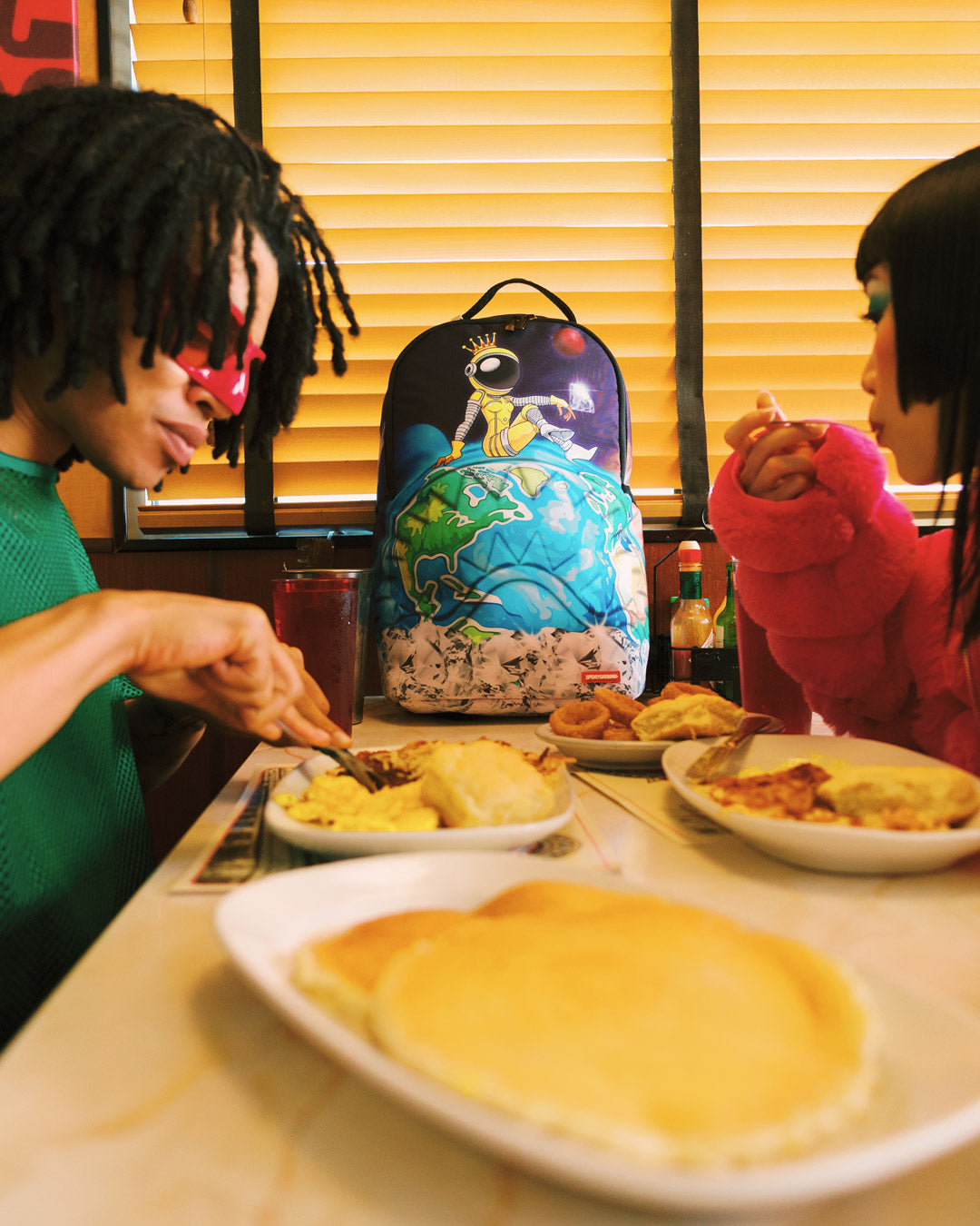 Dimensions: 18" x 6" x 11.5" • Front zipper pocket • Side pockets • Zippered Stash pocket • Separate velour sunglass compartment • Ergonomic mesh back padding • Adjustable Straps for custom sizing • Gold zippers with metal hardware • Metal "Sprayground Authentic" badge • Slide through back sleeve connects to carry-on luggage to free your hands