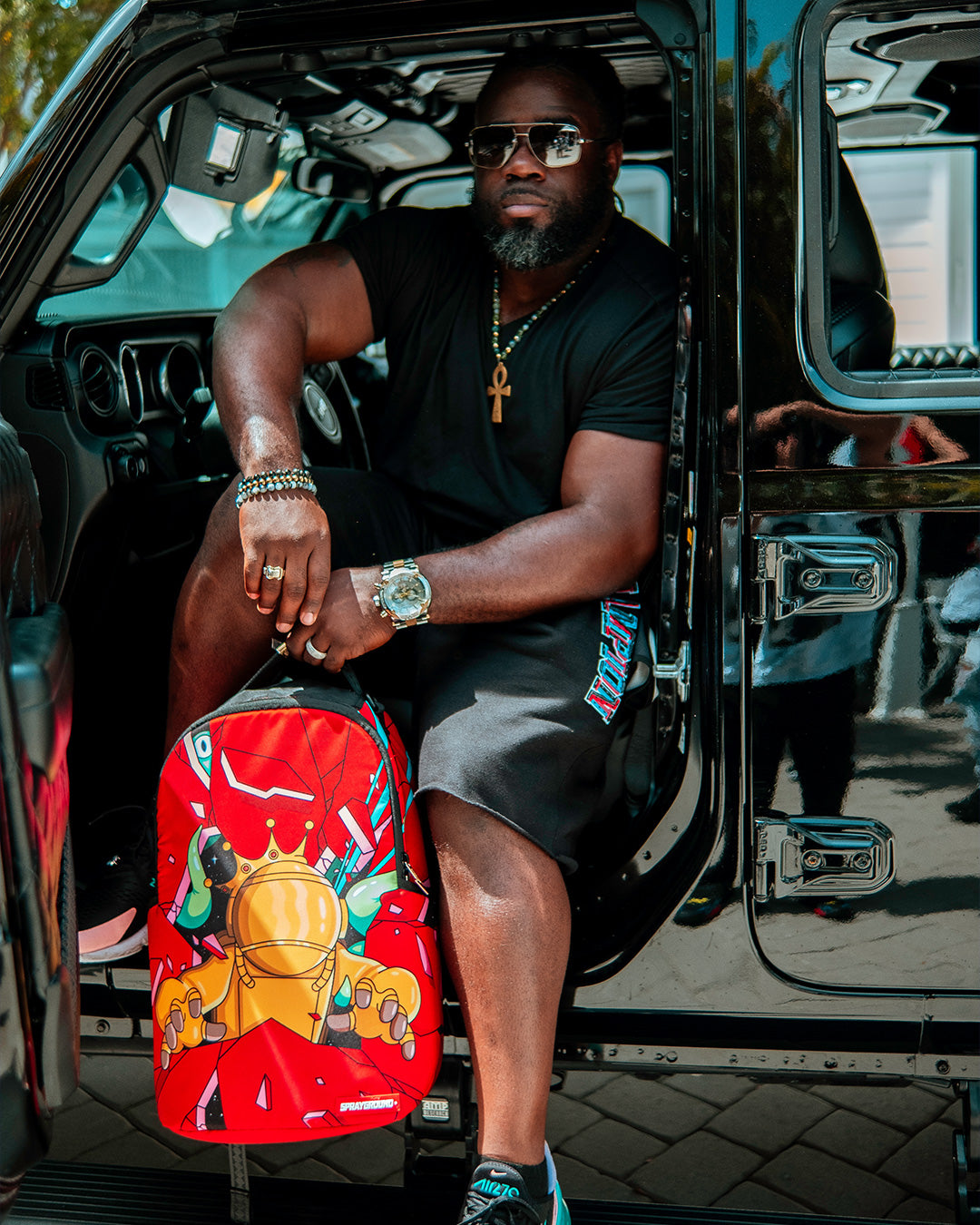 ExteriorDimensions: 18" x 6" x 11.5" ∙ Front zipper pocket ∙ Side pockets ∙ Zippered Stash pocket ∙ Ergonomic mesh back padding ∙ Adjustable Straps for custom sizing ∙ Nylon Zippers with Metal Hardware ∙ Metal "Sprayground Authentic" badge ∙ Slide through back sleeve connects to Carry on luggage to free your hands