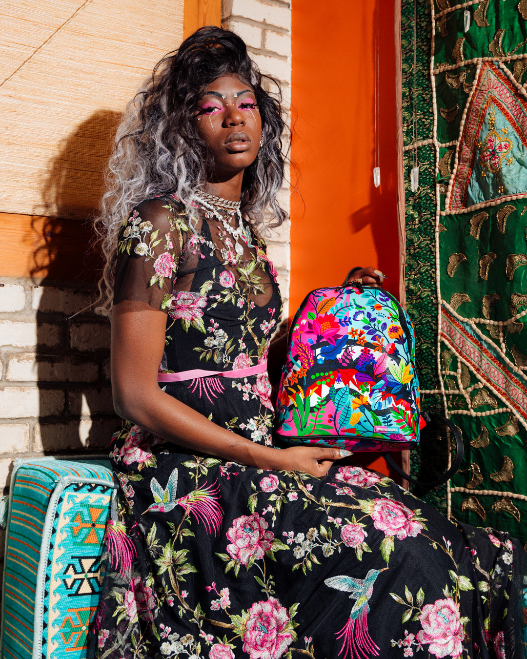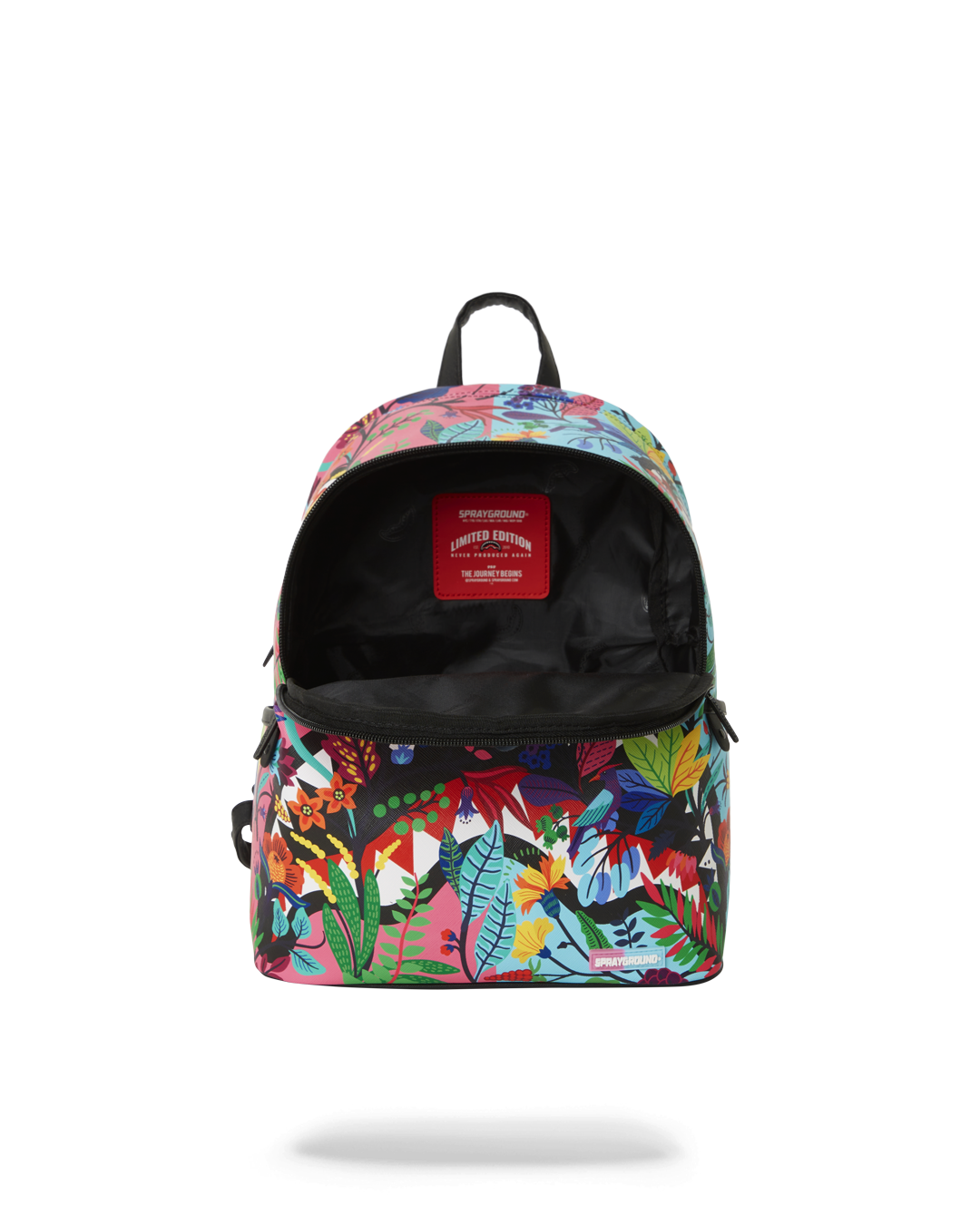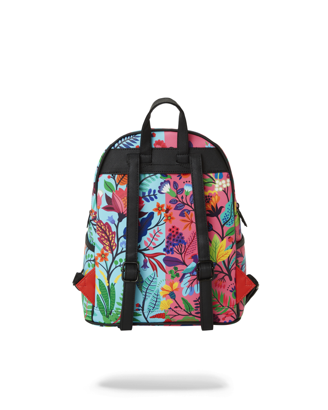 Dimensions: 10" x 5" x 11.5" • Two large main zippered compartments • Side pockets • Zippered Stash pocket • Adjustable straps for custom sizing • Gold zippers with metal hardware