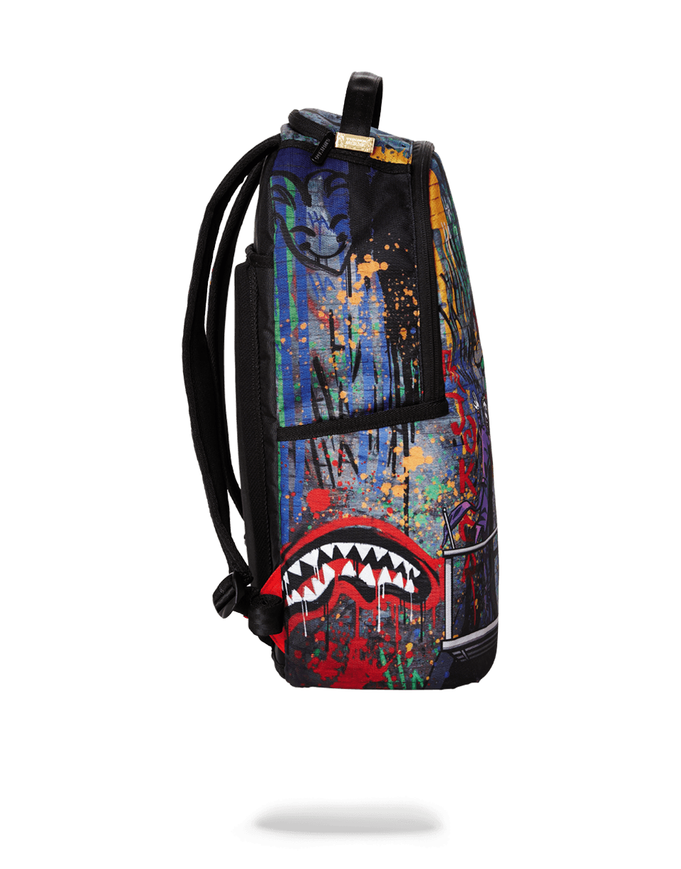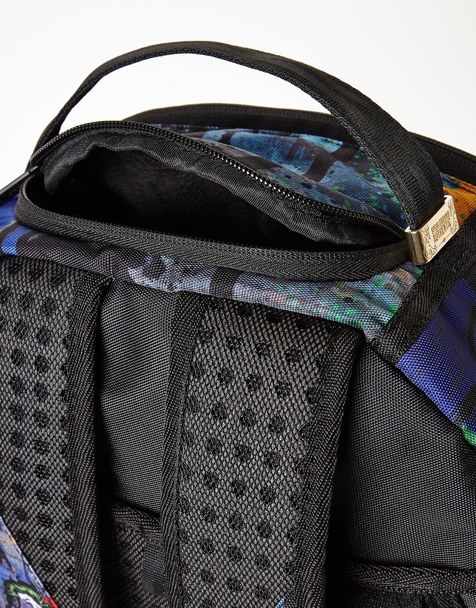 ExteriorDimensions: 18" x 6" x 11.5" • Front zipper pocket • Side pockets • Zippered Stash pocket • Ergonomic mesh back padding • Adjustable Straps for custom sizing • Nylon Zippers with Metal Hardware • Metal "Sprayground Authentic" badge • Slide through back sleeve connects to Carry on luggage to free your hands
