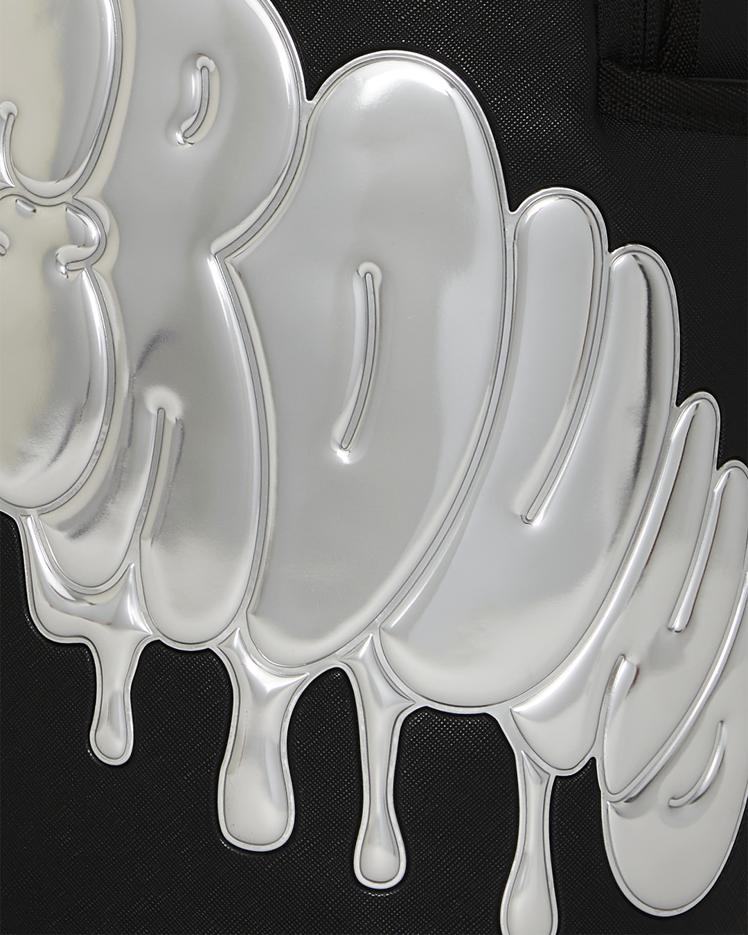 Made from smooth, glossy TPU material, this backpack reflects light like a mirror with a high-shine, futuristic finish. The SPRAYGROUND logo is embossed for tactile branding detail that catches the eye.
