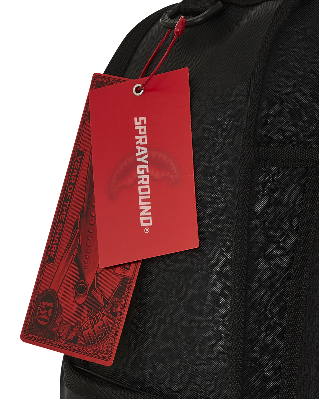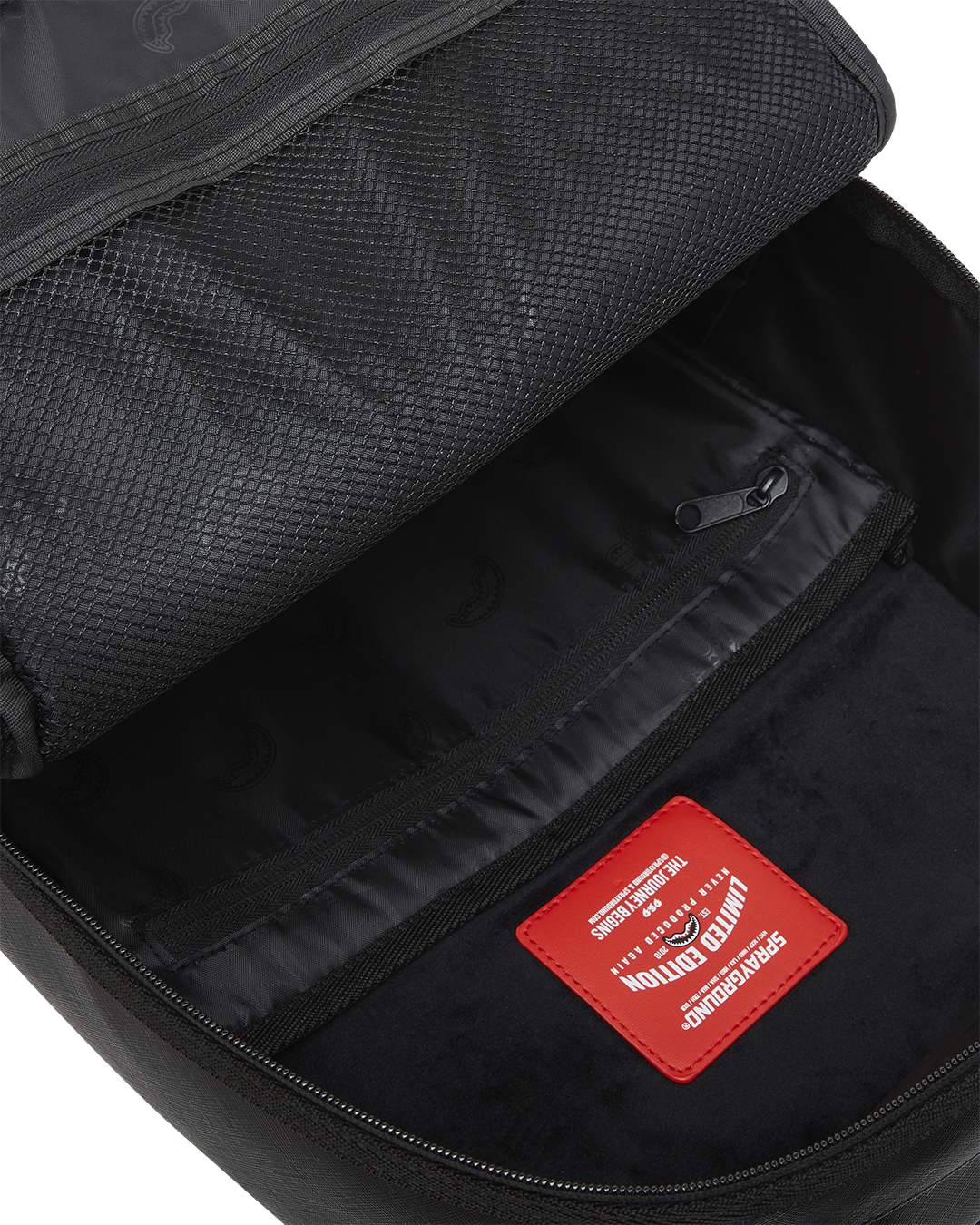 Dimensions: 18" x 6" x 11.5" • Front zipper pocket • Side pockets • Zippered Stash pocket • Separate velour sunglass compartment • Ergonomic mesh back padding • Adjustable Straps for custom sizing • Gold zippers with metal hardware • Metal "Sprayground Authentic" badge • Slide through back sleeve connects to carry-on luggage to free your hands