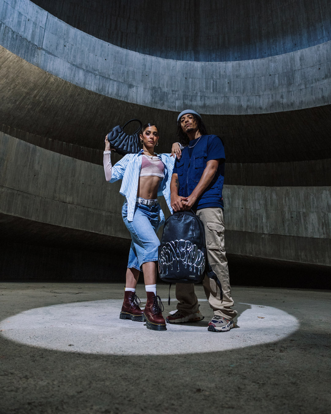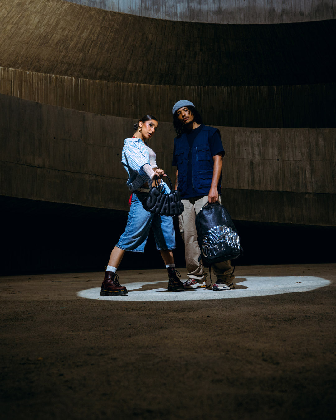 Black saffiano PVC offers a textured, scratch-resistant surface with a matte finish. The vegan leather handle is soft yet sturdy, designed for comfort. Gunmetal chains and studs add a cool, industrial shine, perfectly contrasting the tactile saffiano texture