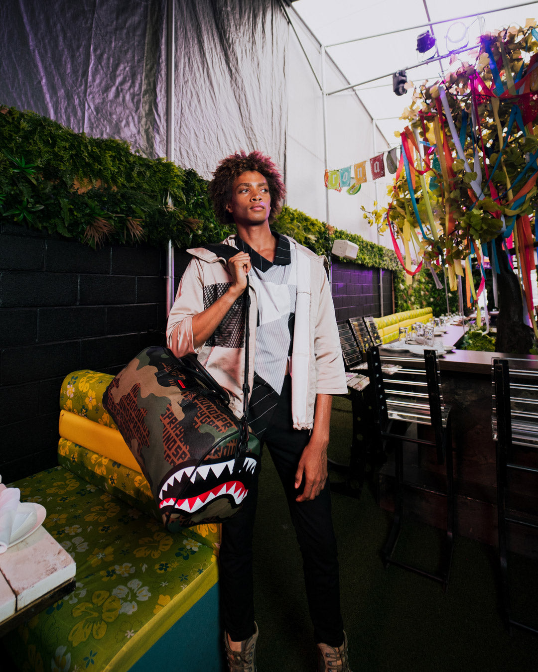 Dimensions: 20" x 10" x 10.75" • Metal zipper pocket• Back Zippers •Zippered sneaker pocket • gold zippers • Adjustable Straps for custom sizing •Metal Zippers with Metal Hardware • bag of Sprayground money