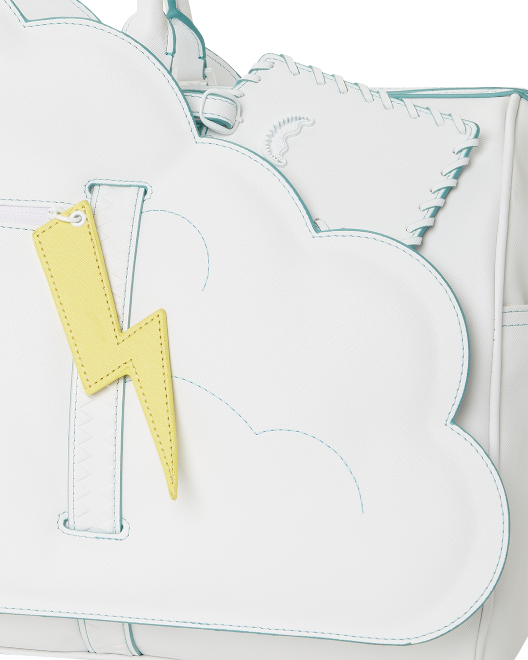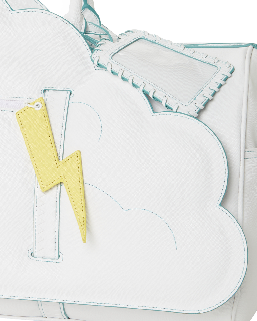 A fun quirky capsule with dye cut clouds and lightning bolts in classic Sprayground silhouettes.