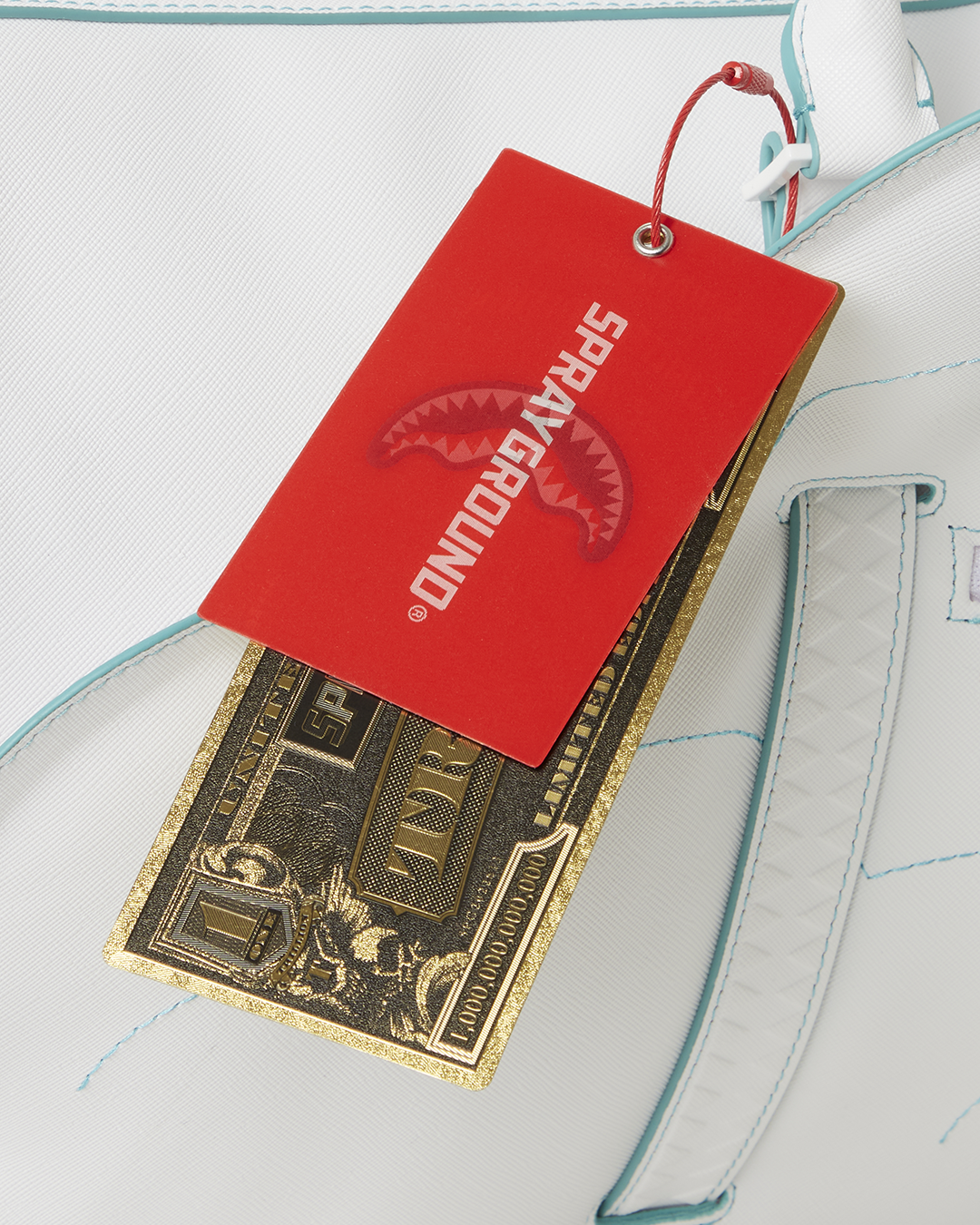 Dimensions: 20" x 10" x 10.75" • Metal zipper pocket• Back Zippers •Zippered sneaker pocket • gold zippers • Adjustable Straps for custom sizing •Metal Zippers with Metal Hardware • bag of Sprayground money