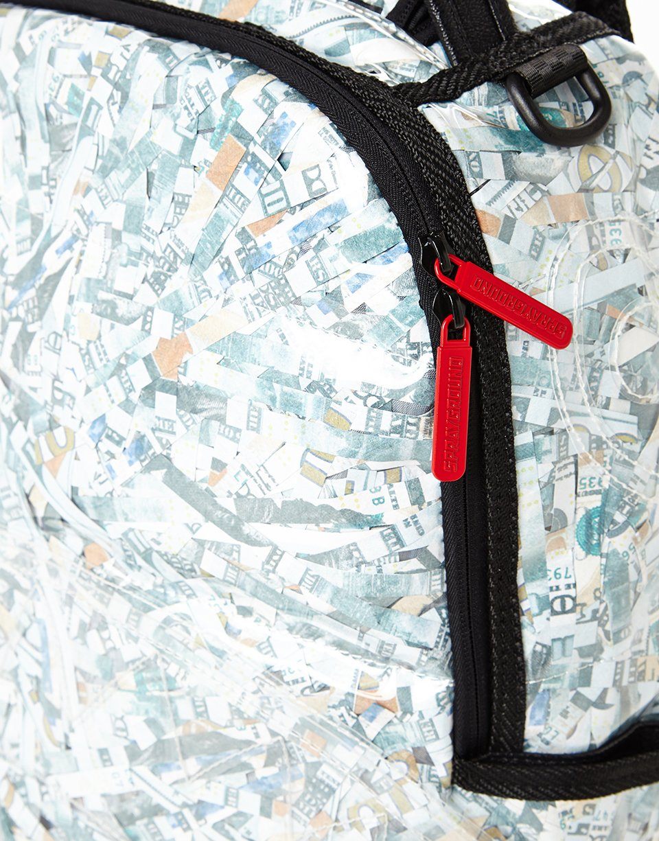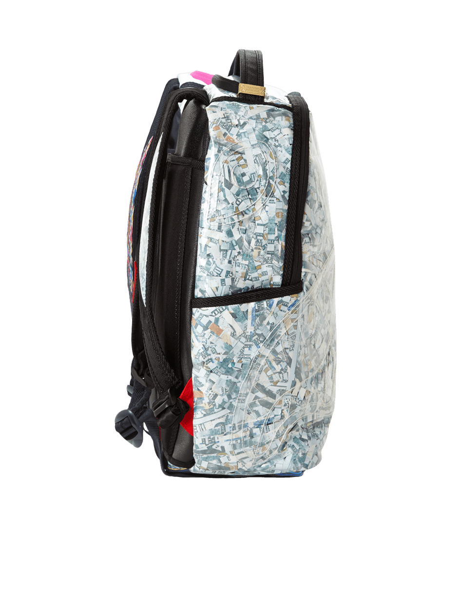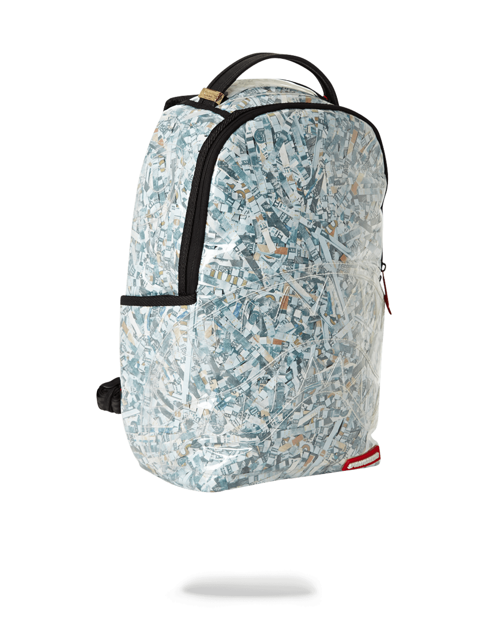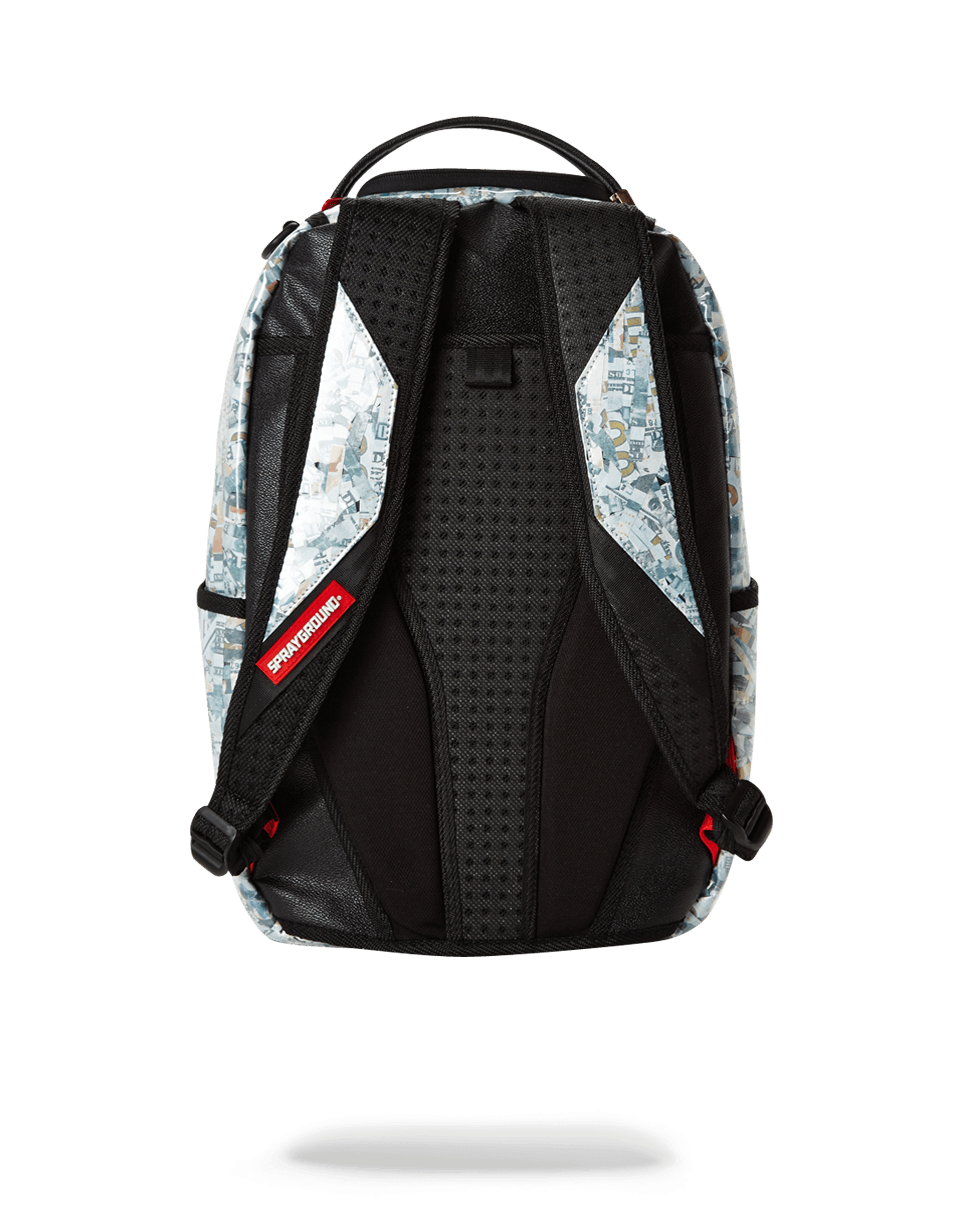 ExteriorDimensions: 18" x 6" x 11.5" • Front zipper pocket • Side pockets • Zippered Stash pocket • Ergonomic mesh back padding • Adjustable Straps for custom sizing • Nylon Zippers with Metal Hardware • Metal "Sprayground Authentic" badge • Slide through back sleeve connects to Carry on luggage to free your hands
