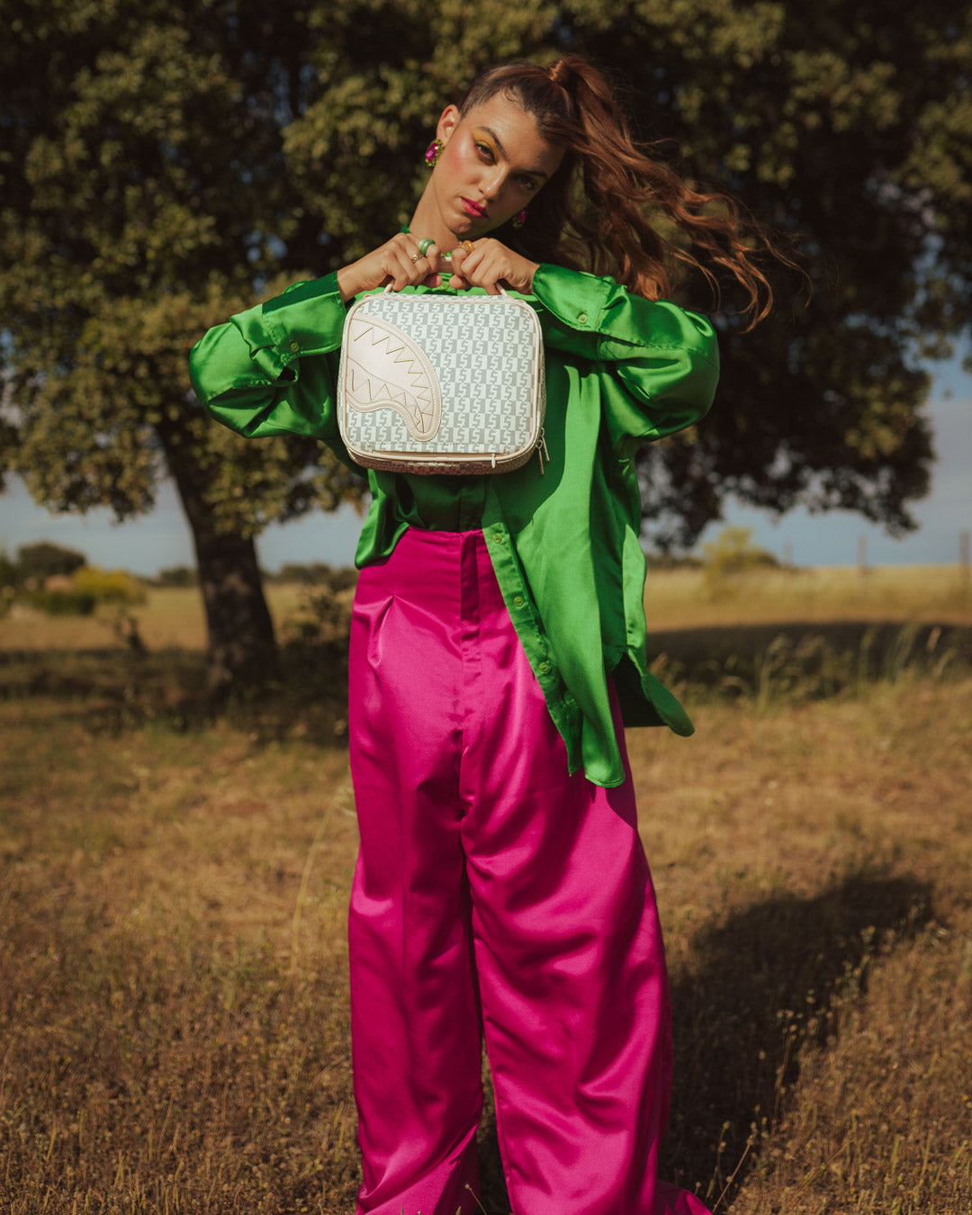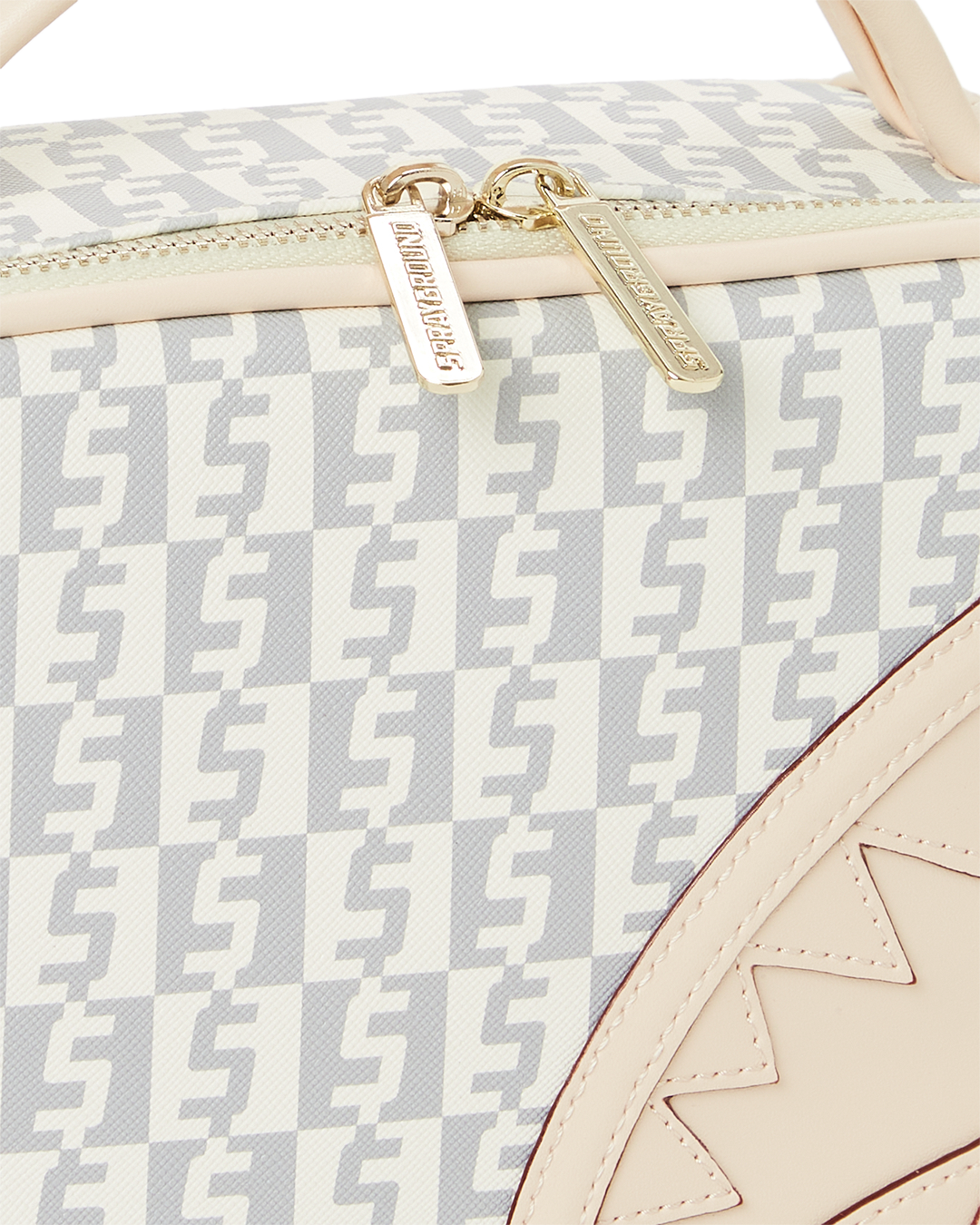ExteriorDimensions: 8.5" x 3" x 8.5" • Double zipper opening • Top handle • Removable side handle • Black zippers with metal hardware • Zippered stash pocket