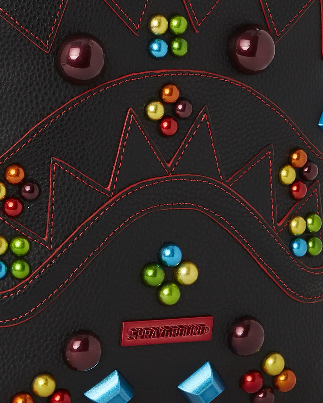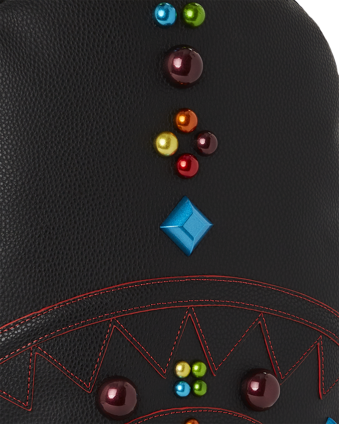 Dimensions: 18" x 6" x 11.5" • Front zipper pocket • Side pockets • Zippered Stash pocket • Separate velour sunglass compartment • Ergonomic mesh back padding • Adjustable Straps for custom sizing • Gold zippers with metal hardware • Metal "Sprayground Authentic" badge • Slide through back sleeve connects to carry-on luggage to free your hands