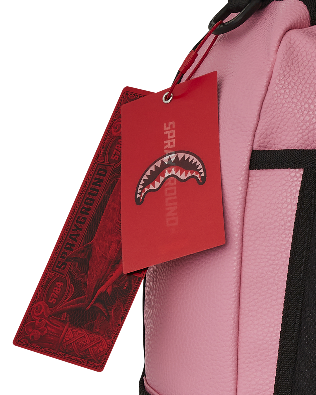 Dimensions: 18" x 6" x 11.5" • Front zipper pocket • Side pockets • Zippered Stash pocket • Separate velour sunglass compartment • Ergonomic mesh back padding • Adjustable Straps for custom sizing • Gold zippers with metal hardware • Metal "Sprayground Authentic" badge • Slide through back sleeve connects to carry-on luggage to free your hands