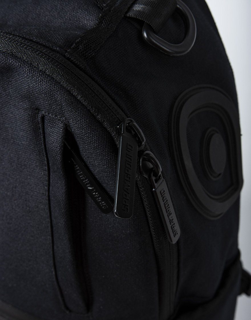 ExteriorDimensions: 18" x 6" x 11.5" ∙ Front zipper pocket ∙ Side pockets ∙ Zippered Stash pocket ∙ Ergonomic mesh back padding ∙ Adjustable Straps for custom sizing ∙ Nylon Zippers with Metal Hardware ∙ 3D Molded rubber shark mouth ∙ Nylon Zippers with Metal Hardware ∙ Metal "Sprayground Authentic" badge ∙ Slide through back sleeve connects to Carry on luggage to free your hands
