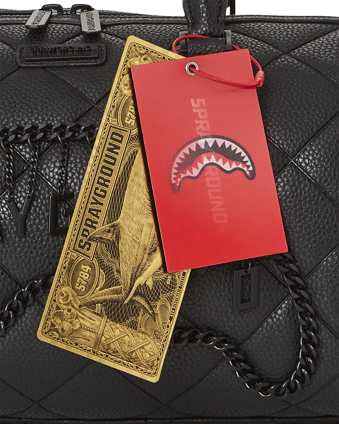 Dimensions: 8" x 7.5" x 13"• Metal zipper pocket• Back Zippers •Zippered sneaker pocket • gold zippers • Adjustable Straps for custom sizing •Metal Zippers with Metal Hardware • bag of Sprayground money
