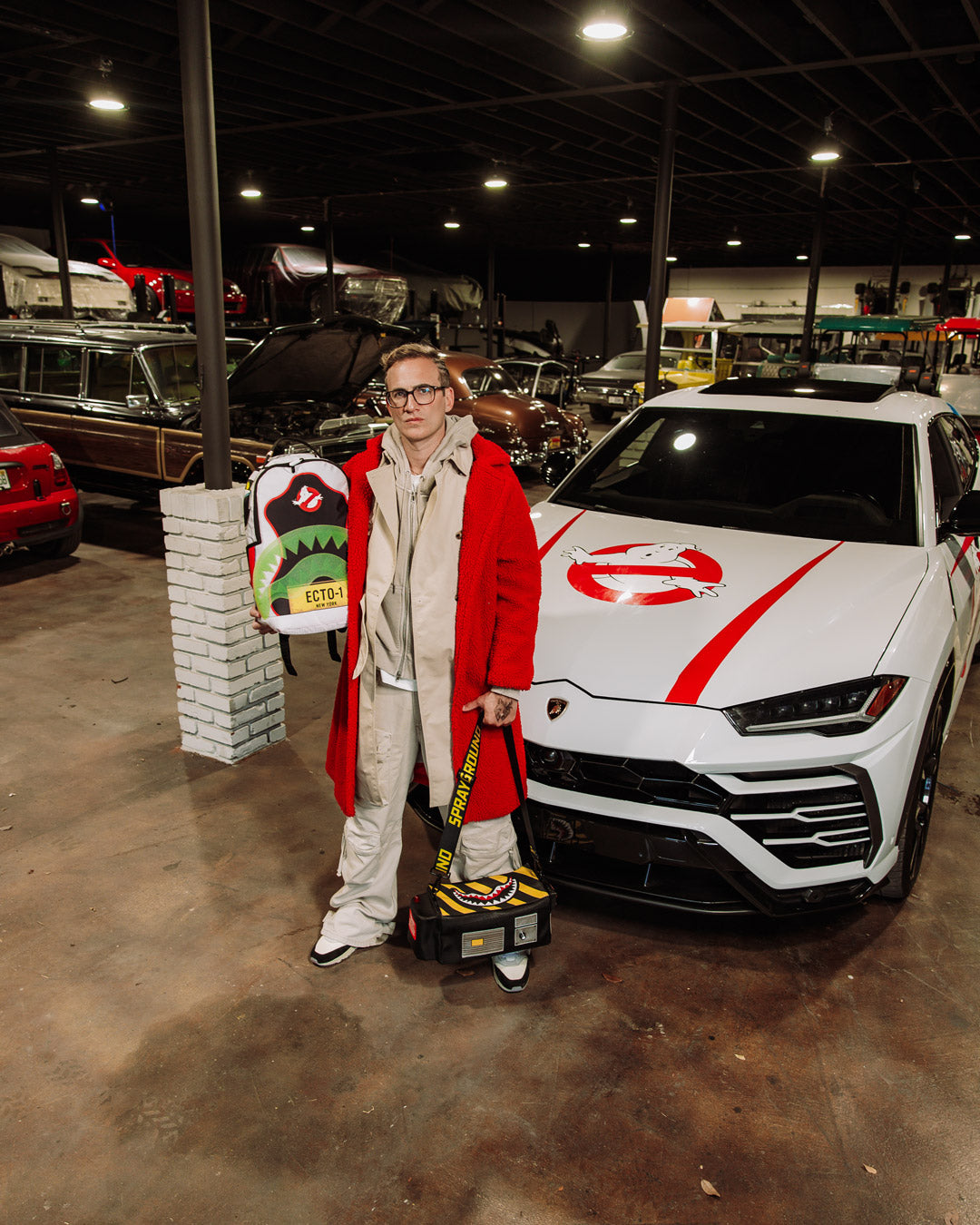 Dimensions: 18" x 6" x 11.5" • Front zipper pocket • Side pockets • Zippered Stash pocket • Separate velour sunglass compartment • Ergonomic mesh back padding • Adjustable Straps for custom sizing • Gold zippers with metal hardware • Metal "Sprayground Authentic" badge • Slide through back sleeve connects to carry-on luggage to free your hands