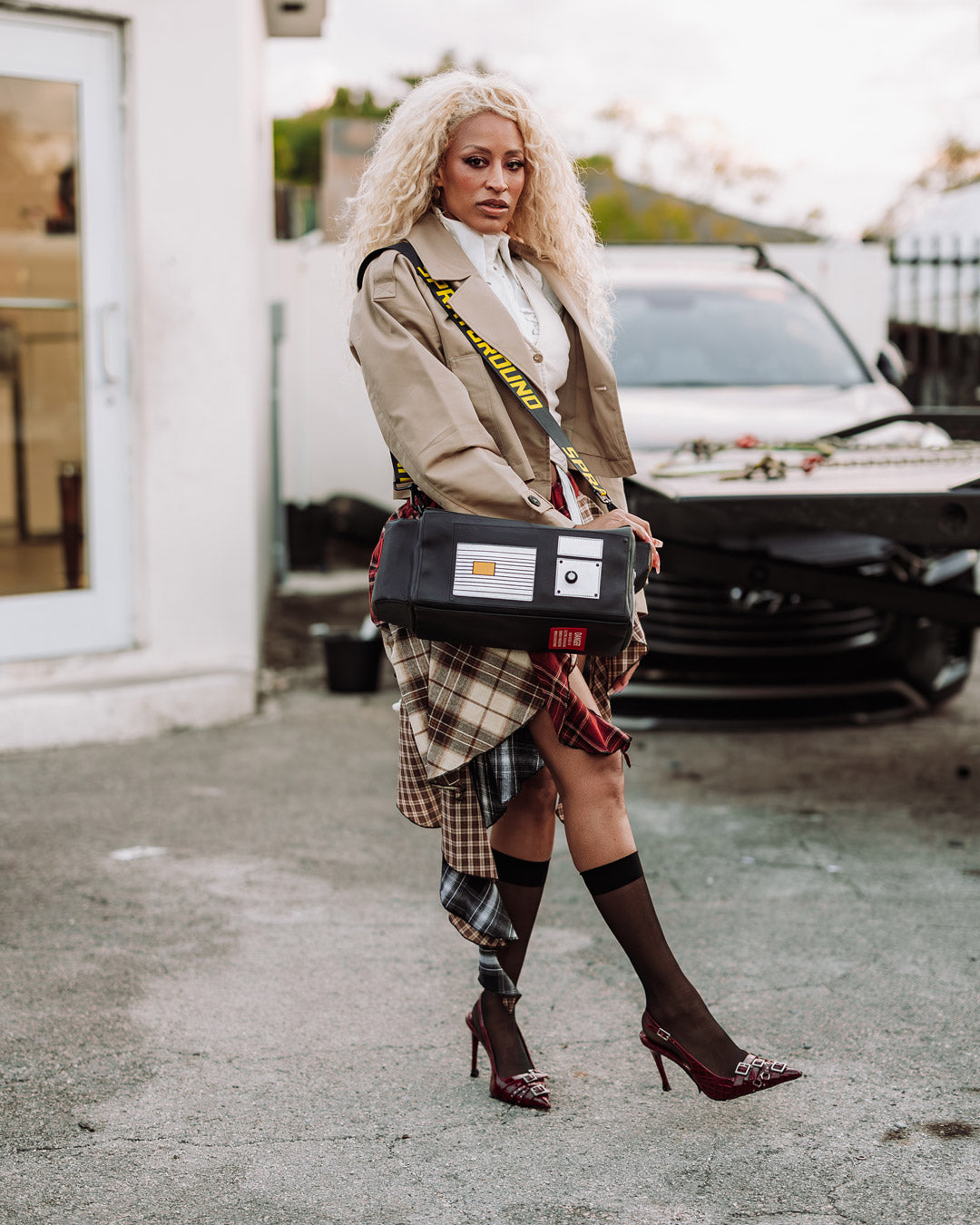 WHO YOU GONNA CALL? Crossbody ghost catcher bag. Includes features such as cut and sew detailing, two interior slip pockets and one zip pocket, faux buttons and switches, two side pockets, an adjustable crossbody strap, and magnetic closure.