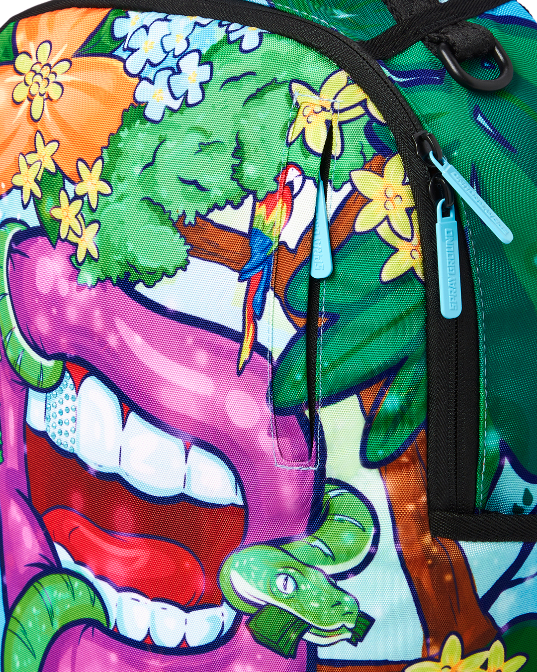 ExteriorDimensions: 18" x 6" x 11.5" ∙ Front zipper pocket ∙ Side pockets ∙ Zippered Stash pocket ∙ Ergonomic mesh back padding ∙ Adjustable Straps for custom sizing ∙ Nylon Zippers with Metal Hardware ∙ Metal "Sprayground Authentic" badge ∙ Slide through back sleeve connects to Carry on luggage to free your hands