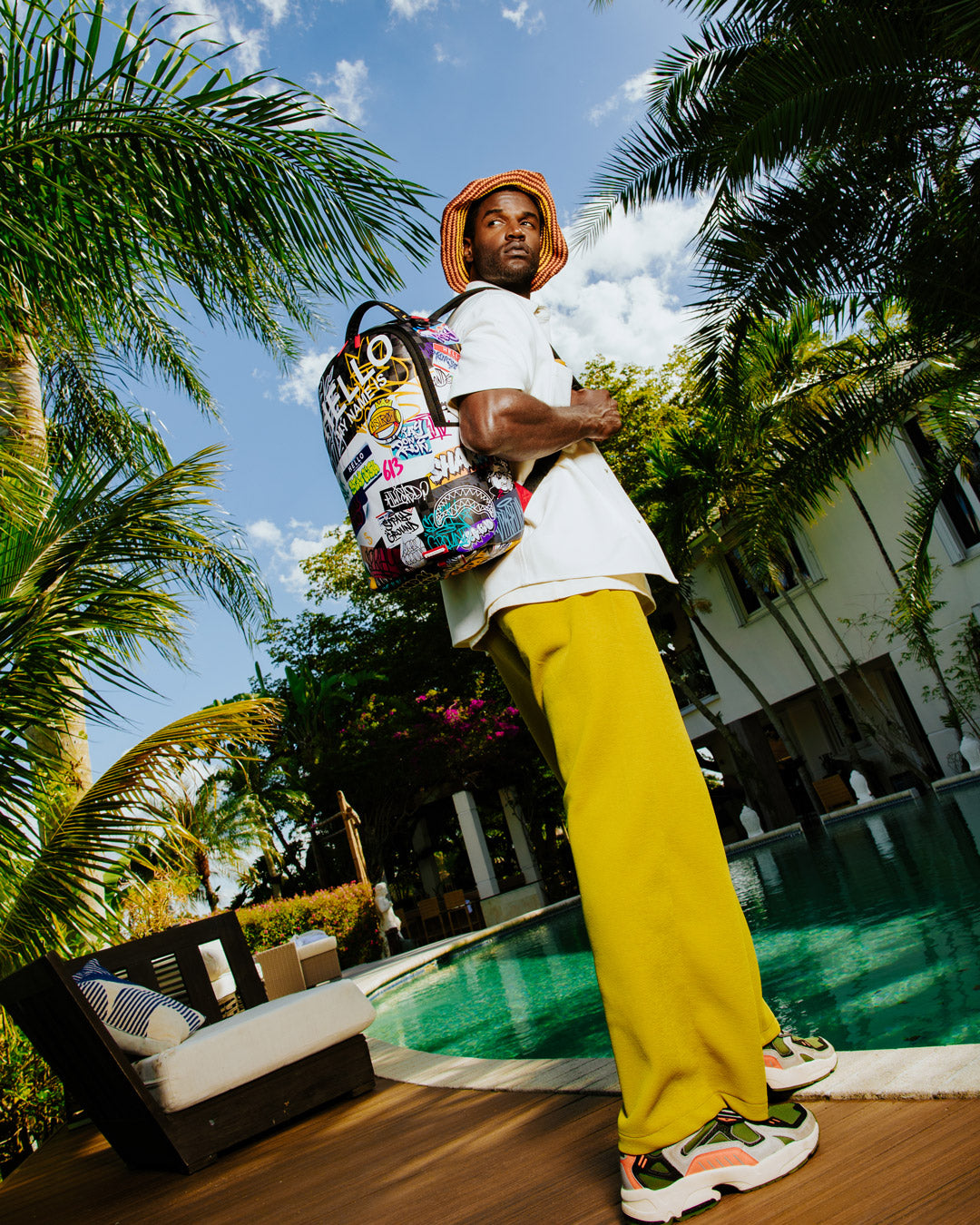 Dimensions: 18" x 6" x 11.5" • Front zipper pocket • Side pockets • Zippered Stash pocket • Separate velour sunglass compartment • Ergonomic mesh back padding • Adjustable Straps for custom sizing • Gold zippers with metal hardware • Metal "Sprayground Authentic" badge • Slide through back sleeve connects to carry-on luggage to free your hands