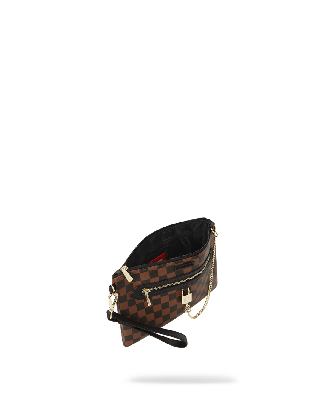 Pouch with removable wristlet strap, Handle on front panel, Zip Closure