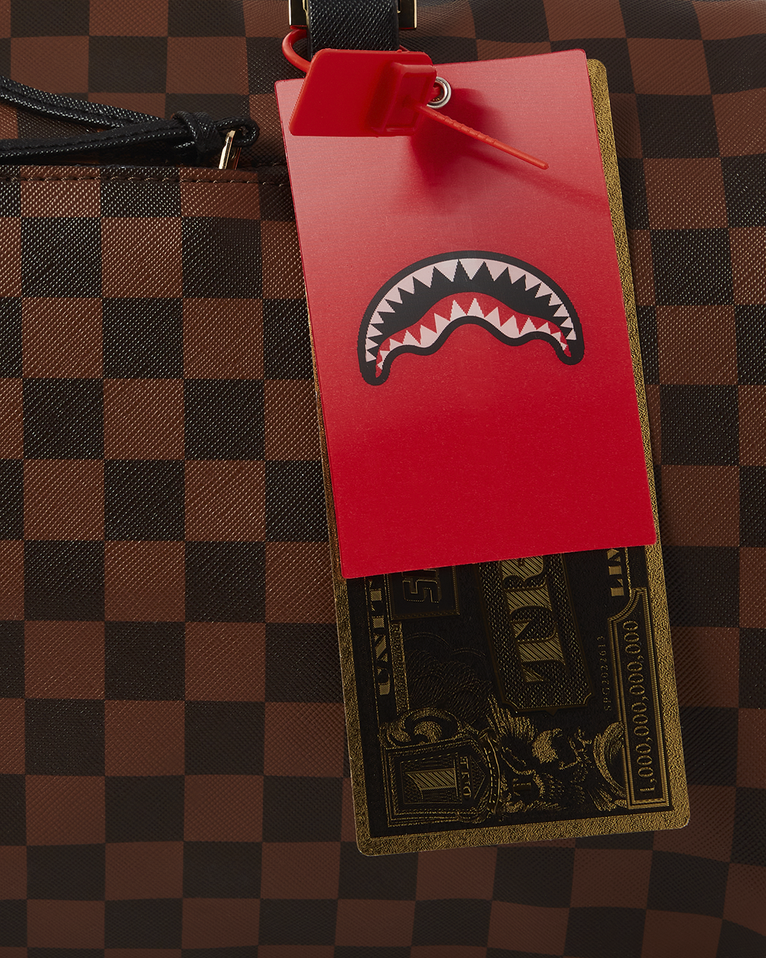 Dimensions: 8" x 7.5" x 13" • Metal zipper pocket• Back Zippers •Zippered sneaker pocket • gold zippers • Adjustable Straps for custom sizing •Metal Zippers with Metal Hardware • bag of Sprayground money