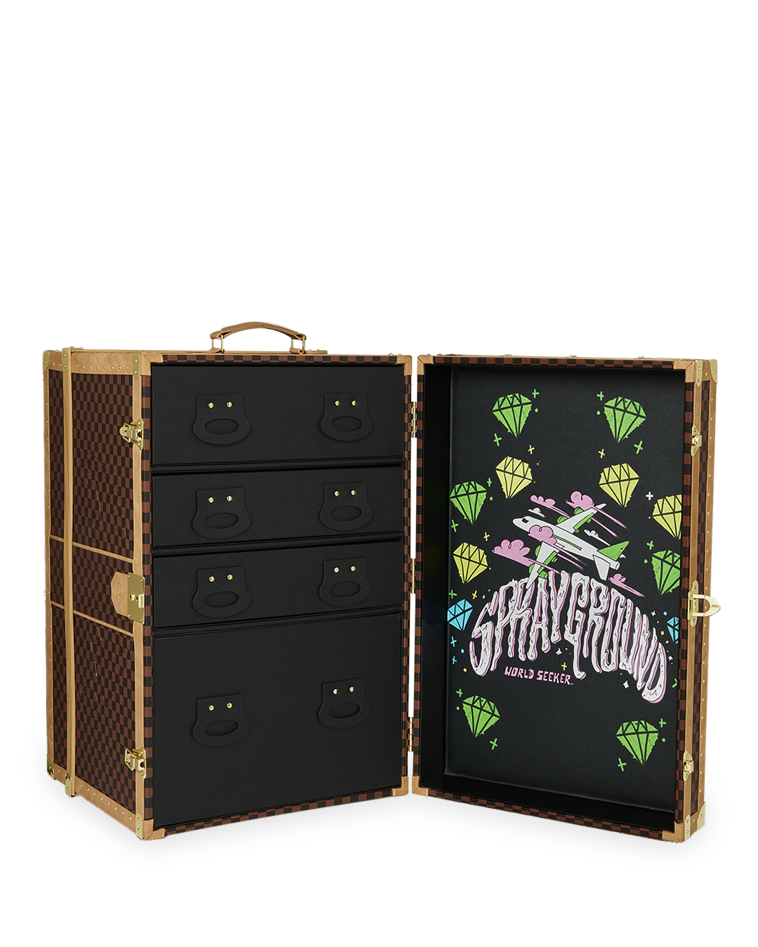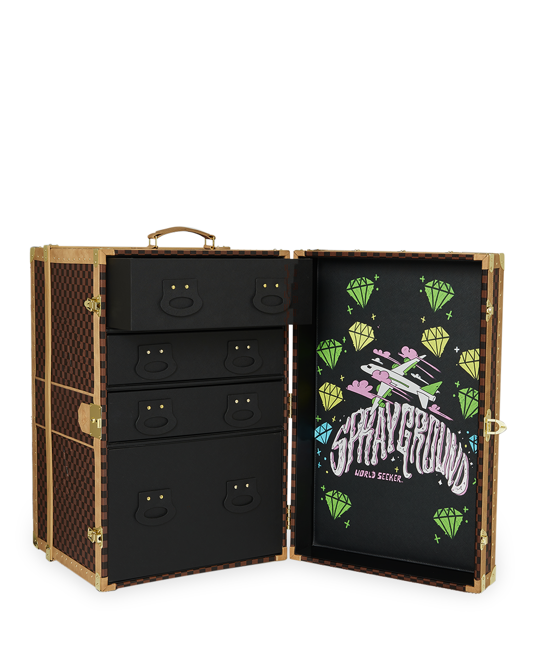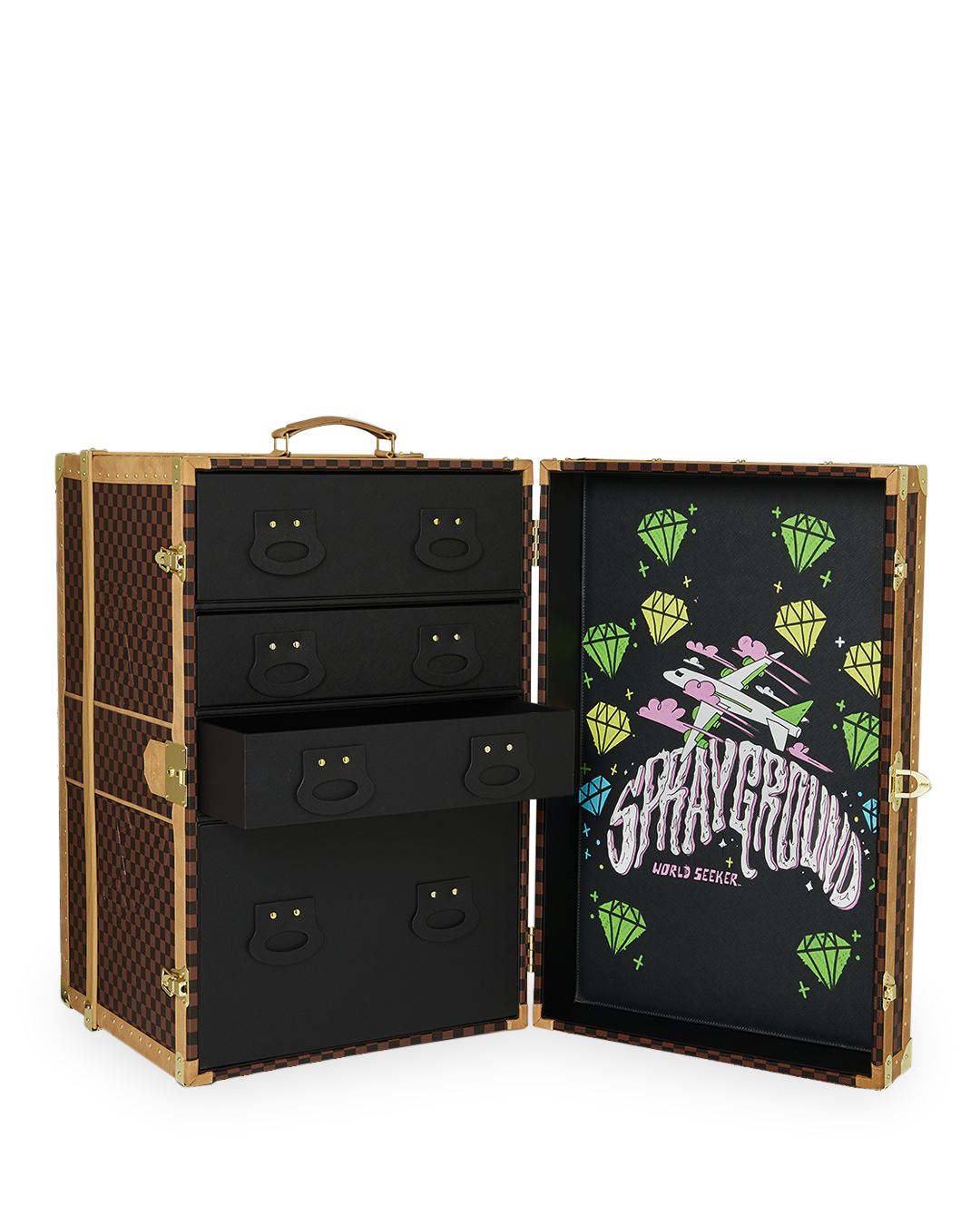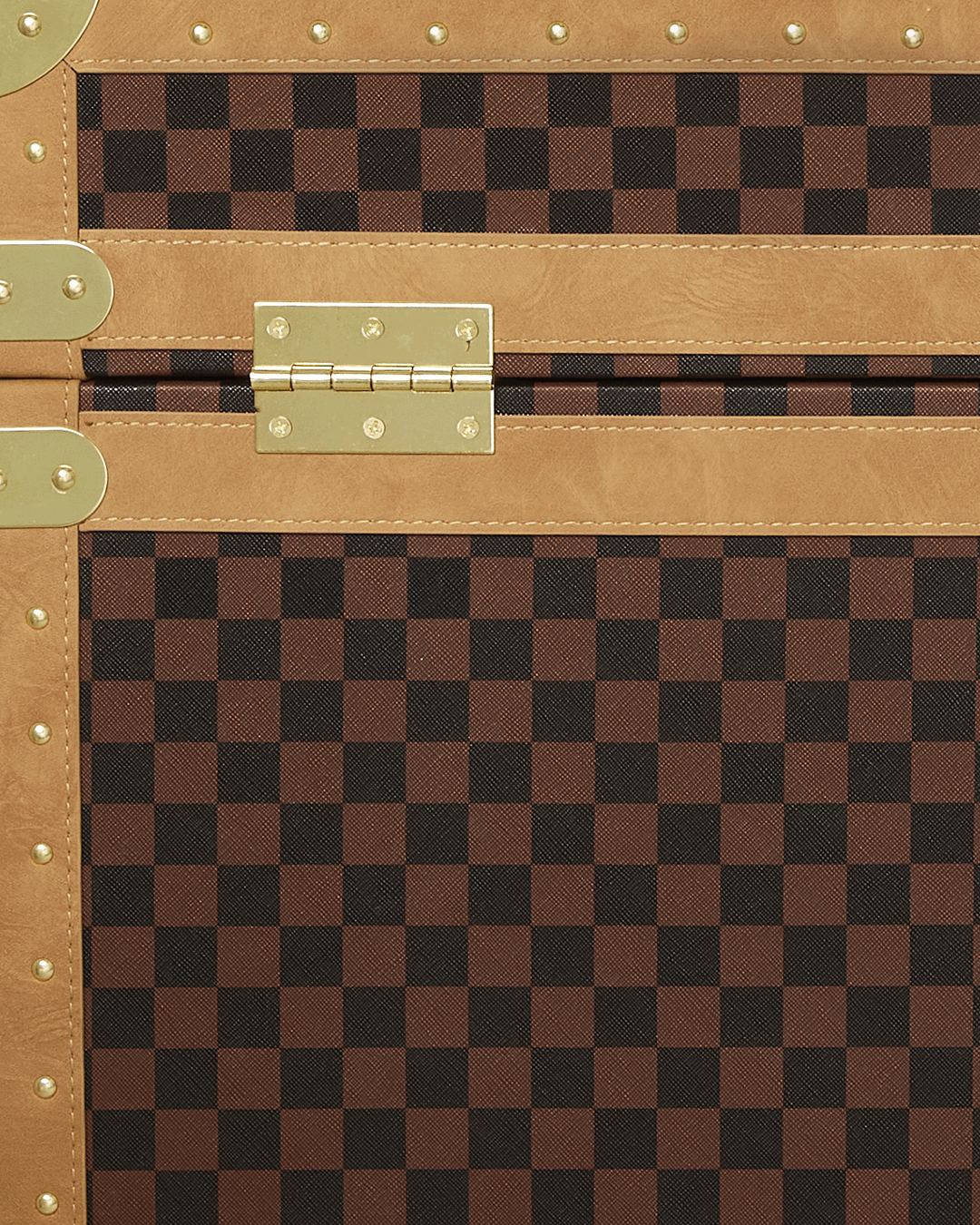 | Cut and sew detailing. Interior features printed interior graphic design. |
