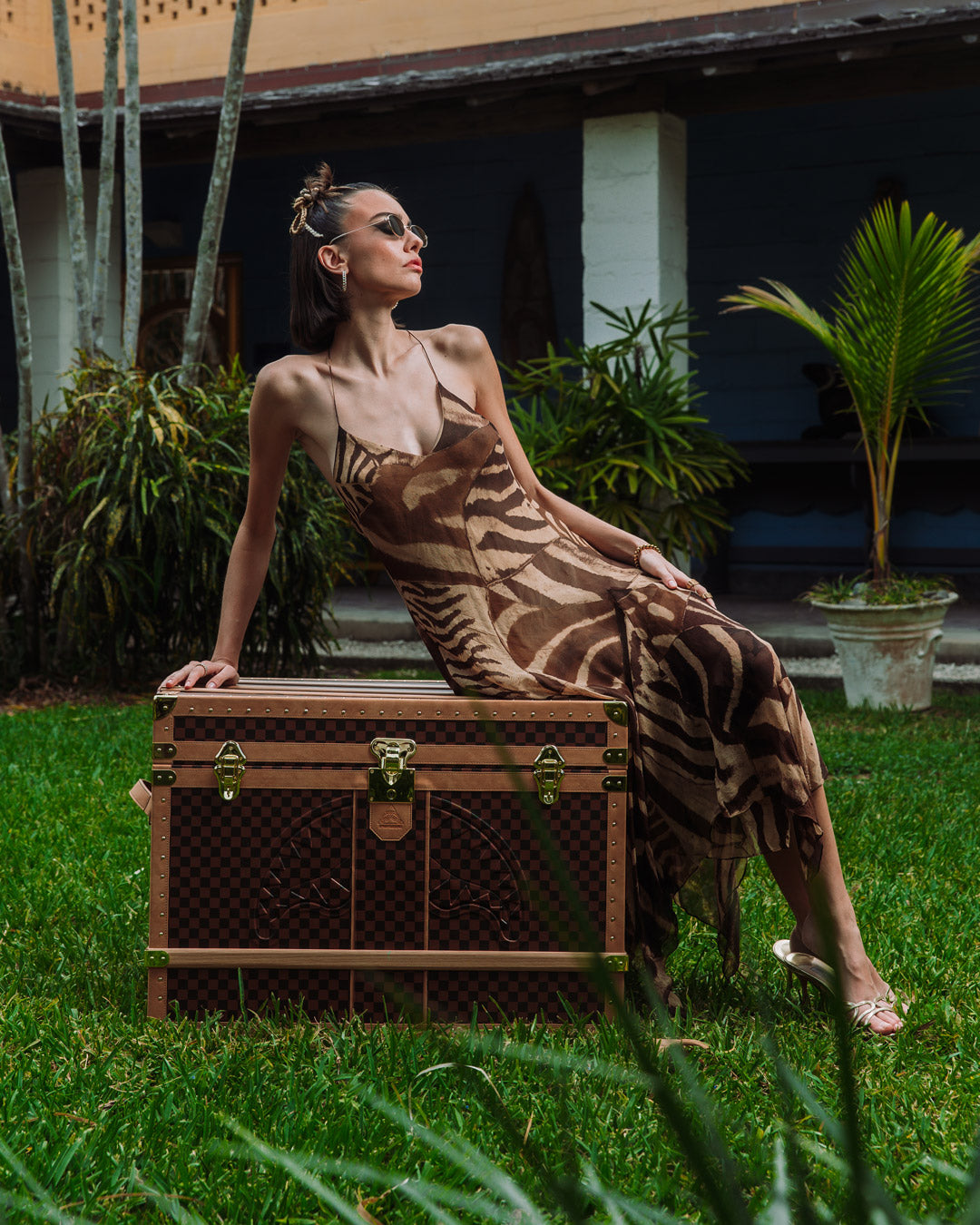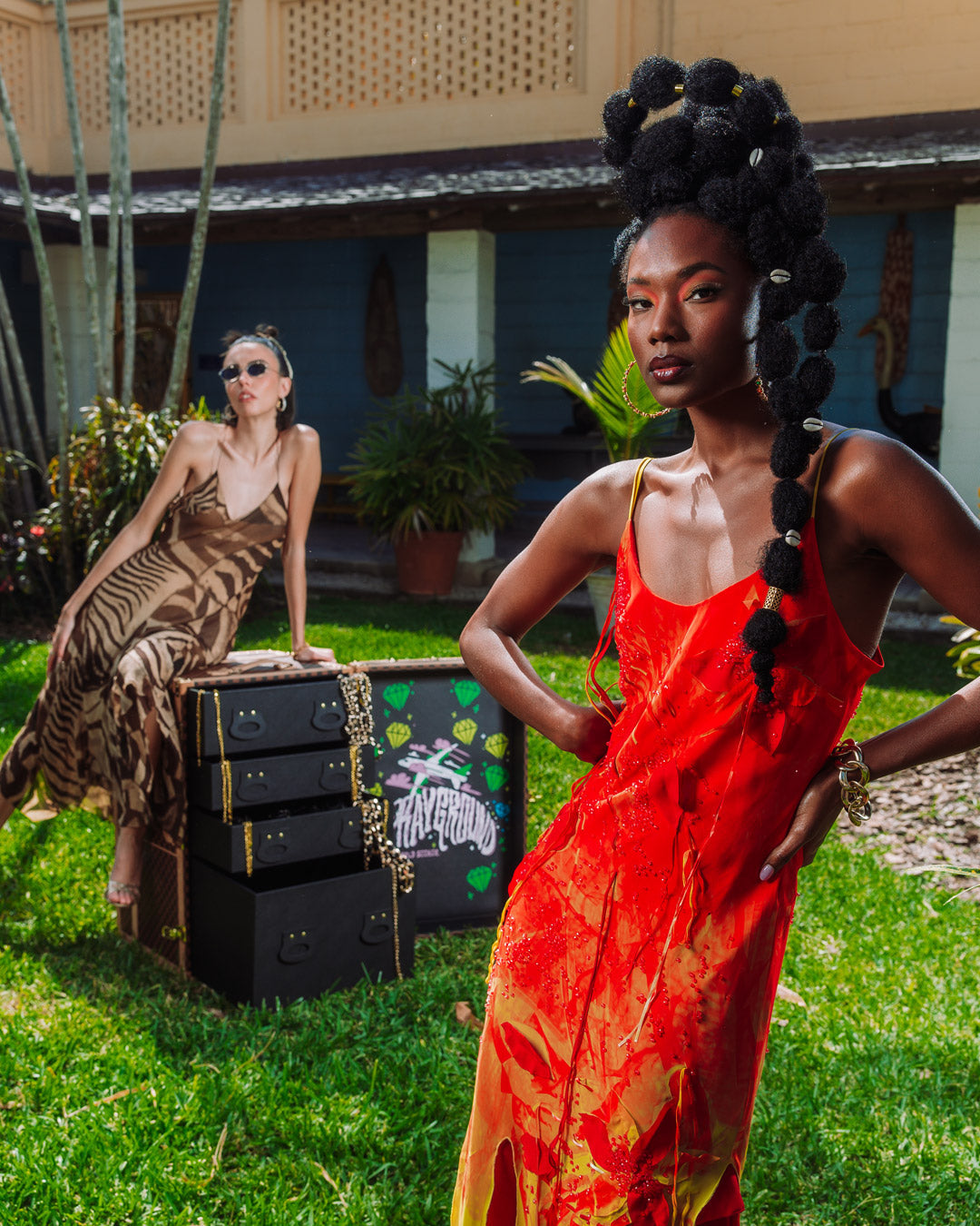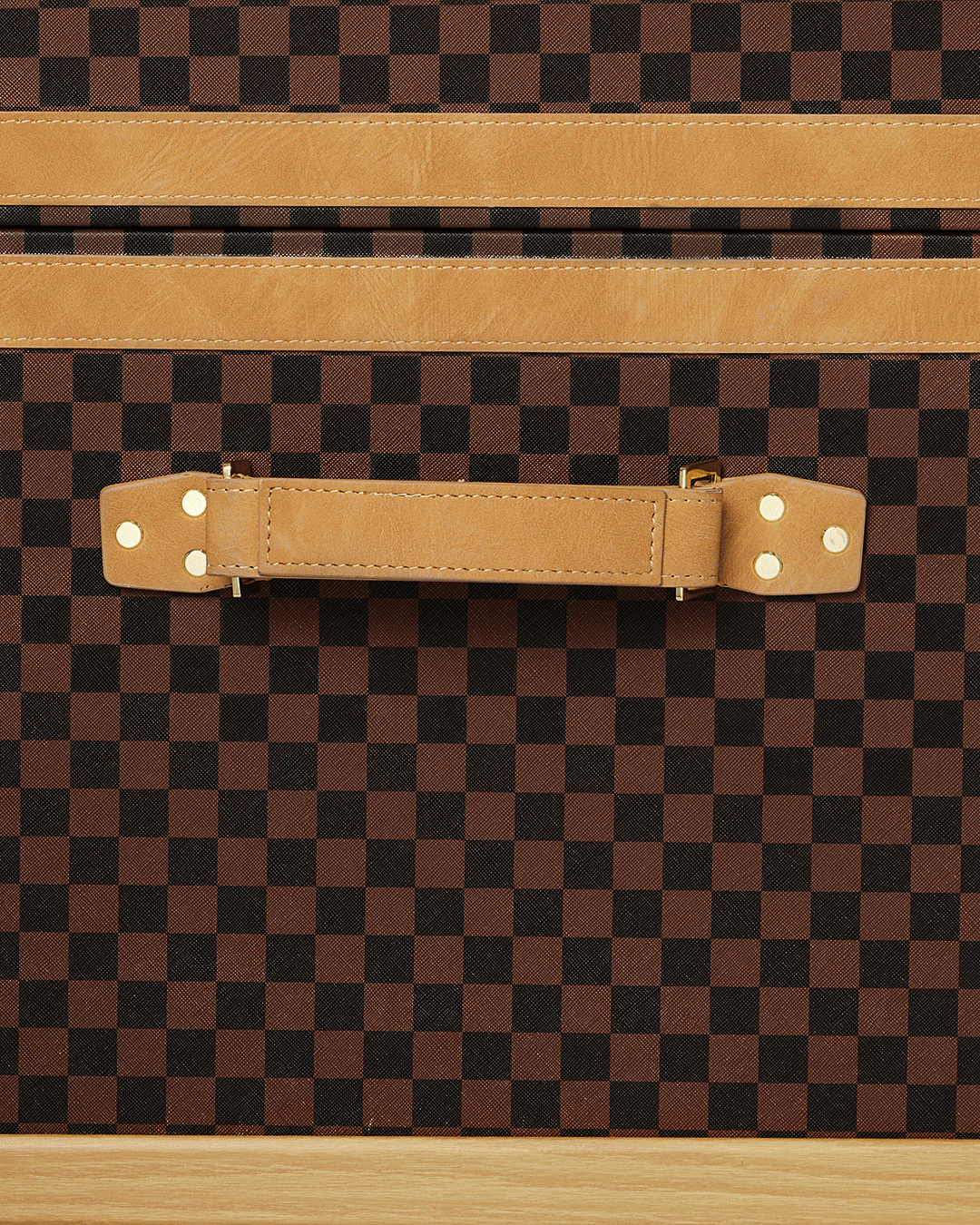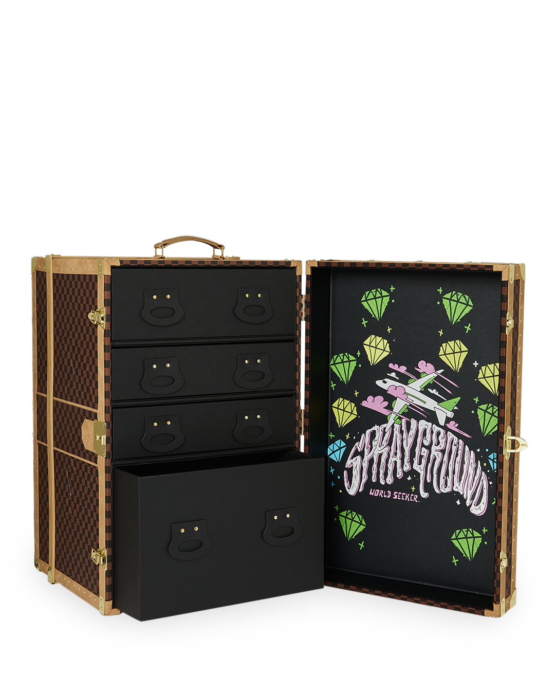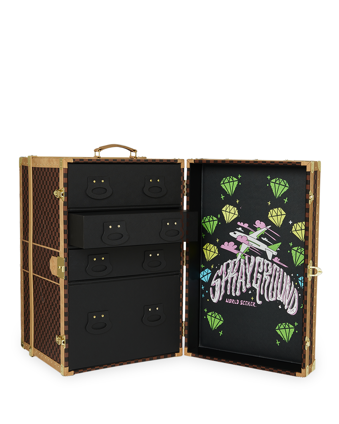 | Cut and sew detailing. Interior features printed interior graphic design. |