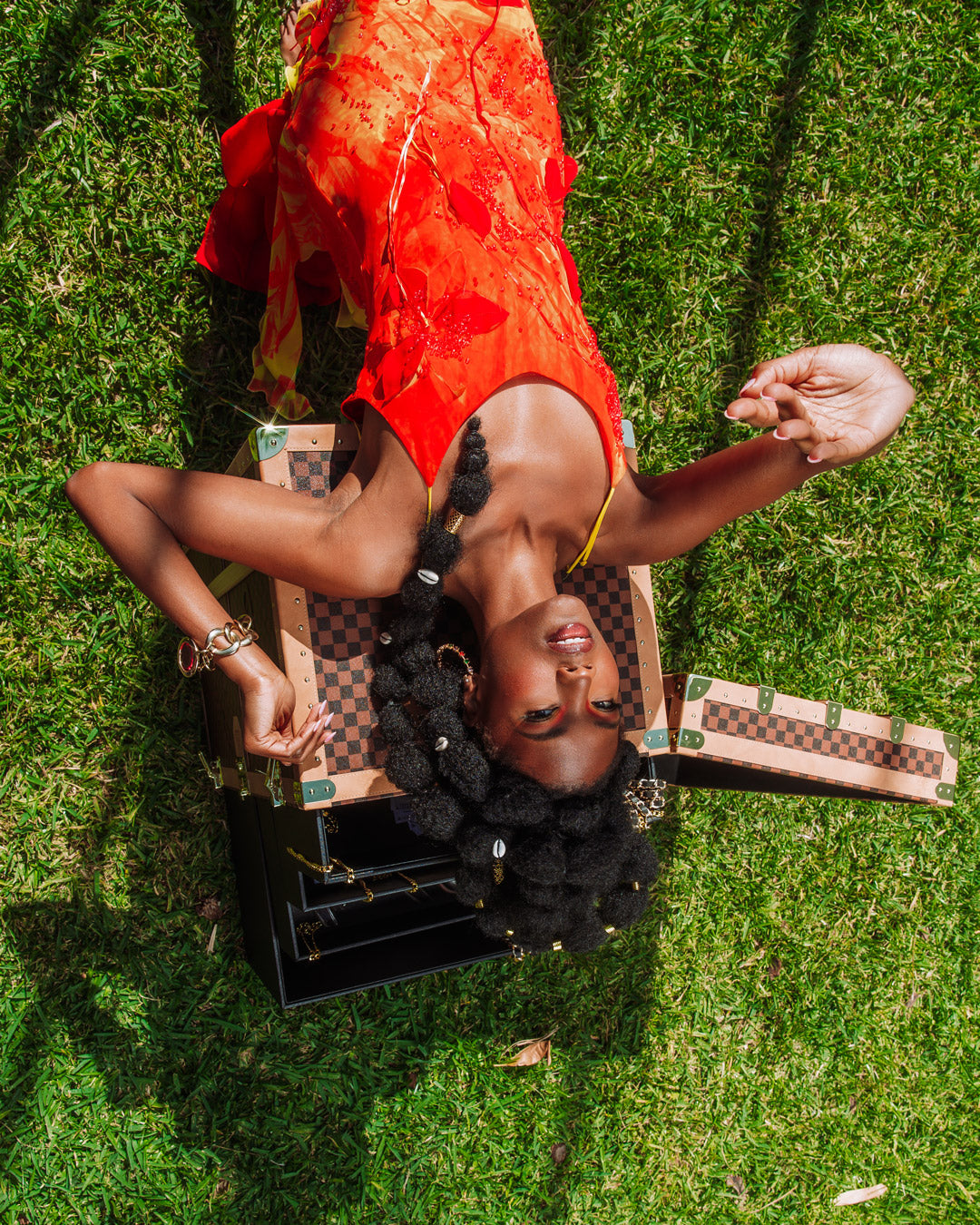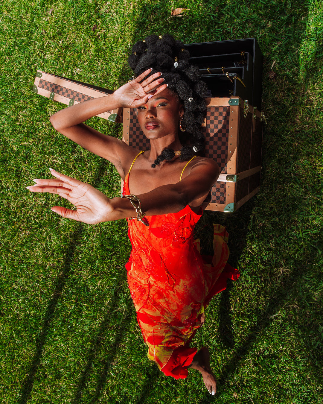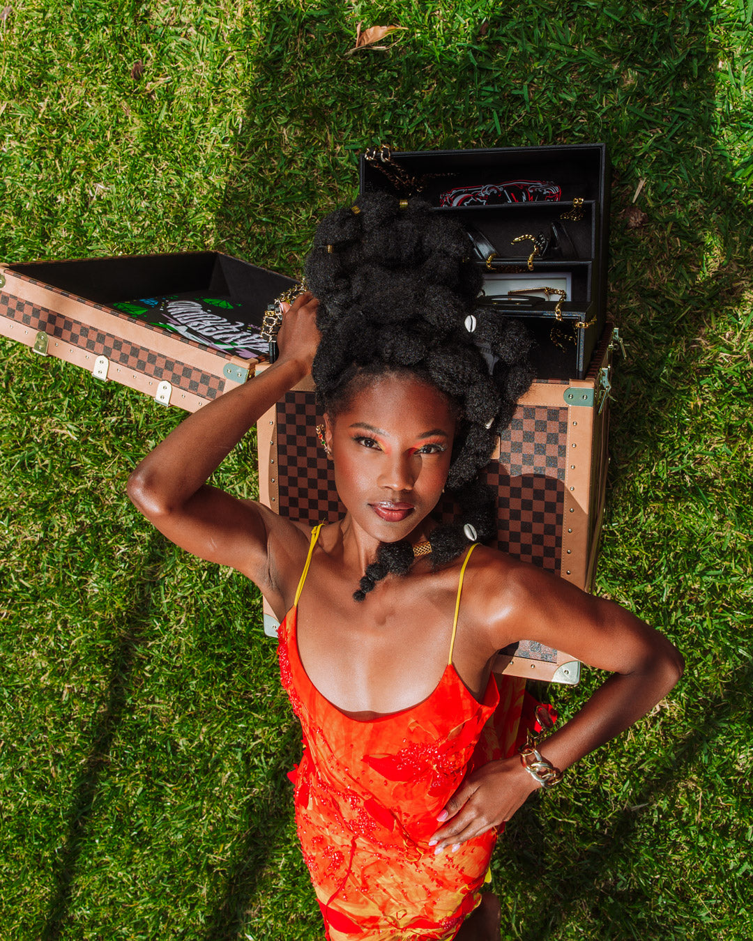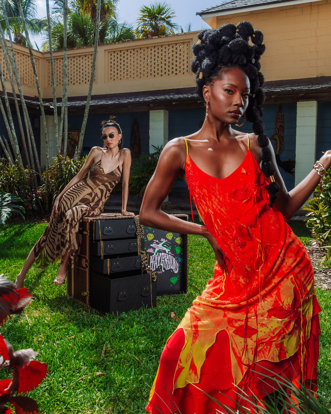 | Cut and sew detailing. Interior features printed interior graphic design. |