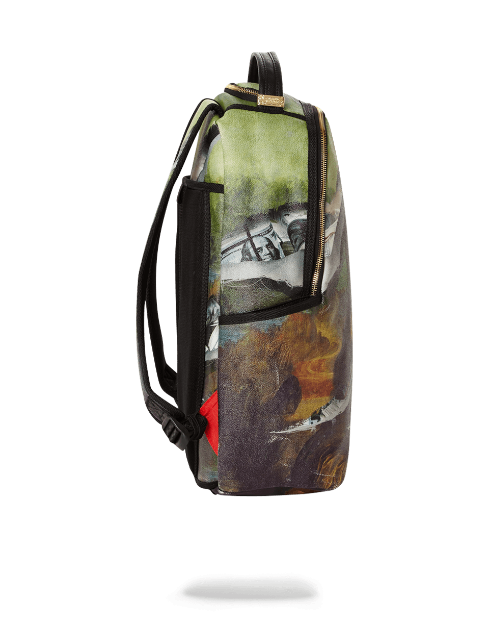 ExteriorDimensions: 18" x 6" x 11.5" ∙ Front zipper pocket ∙ Side pockets ∙ Zippered Stash pocket ∙ Ergonomic mesh back padding ∙ Adjustable Straps for custom sizing ∙ Nylon Zippers with Metal Hardware ∙ Metal "Sprayground Authentic" badge ∙ Slide through back sleeve connects to Carry on luggage to free your hands