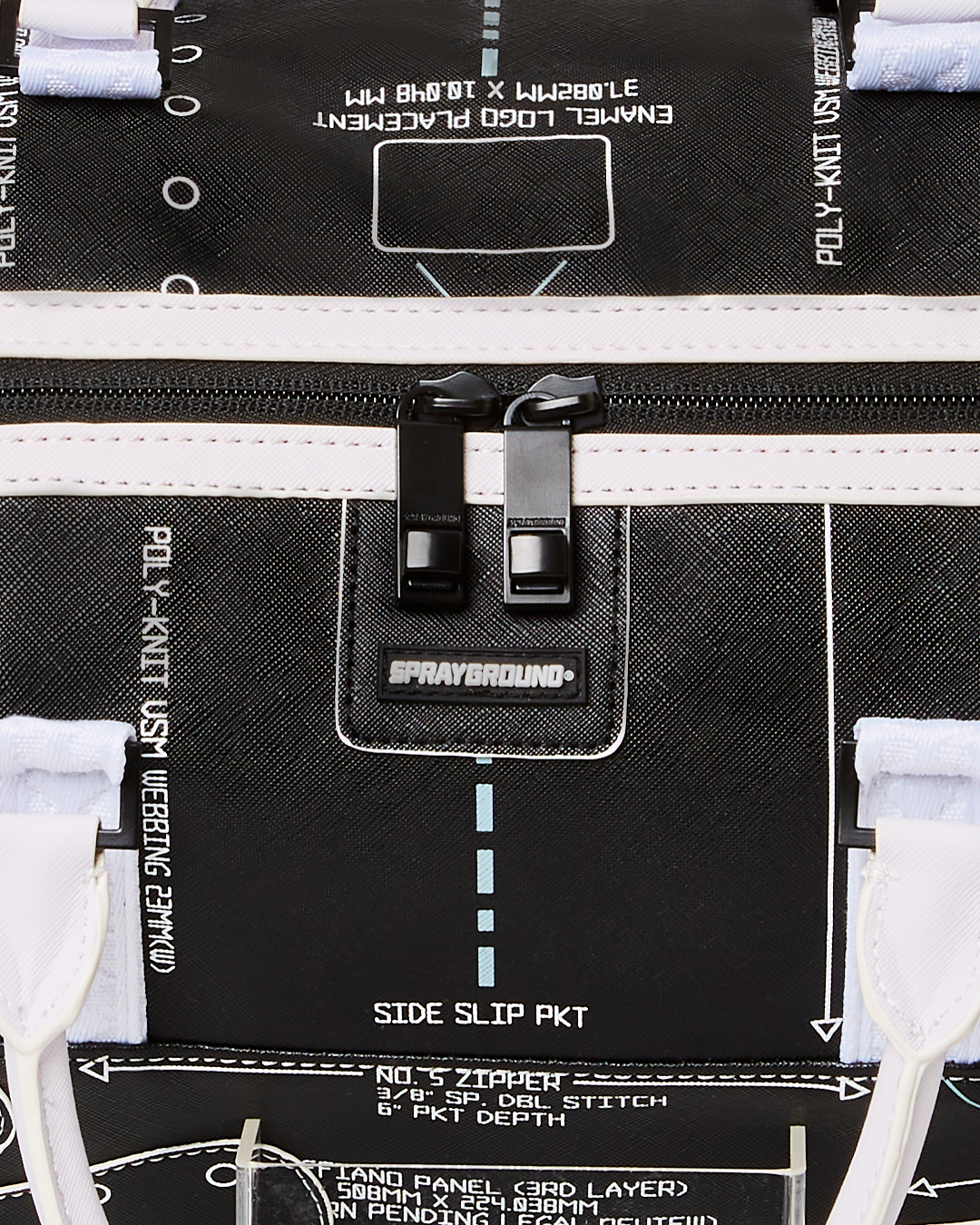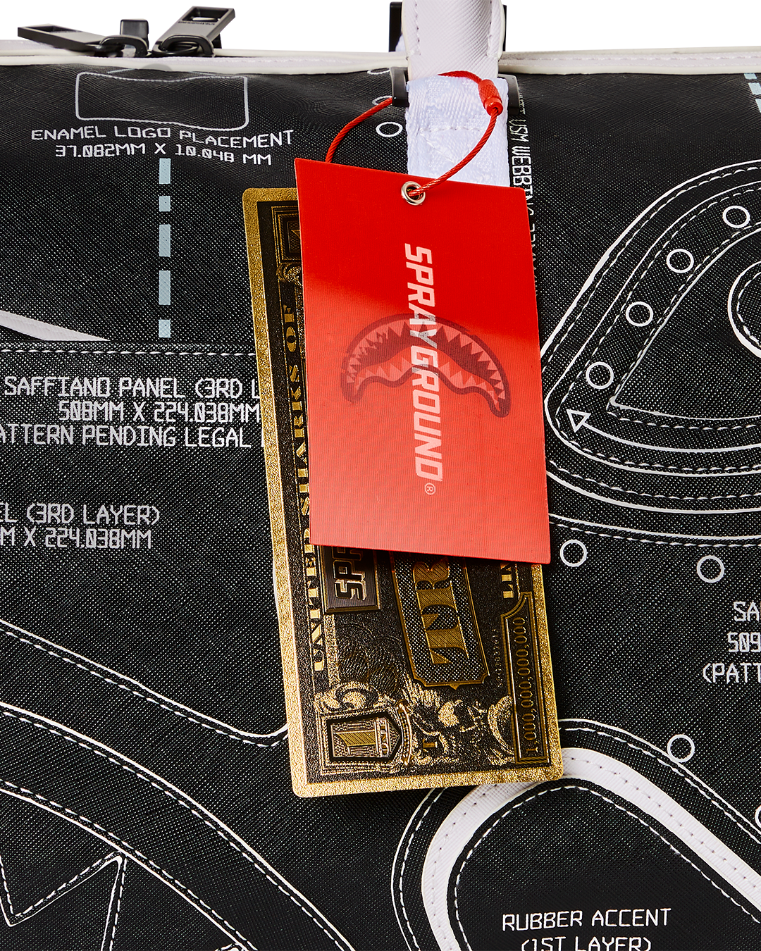 Dimensions: 20" x 10" x 10.75" • Metal zipper pocket• Back Zippers •Zippered sneaker pocket • gold zippers • Adjustable Straps for custom sizing •Metal Zippers with Metal Hardware • bag of Sprayground money