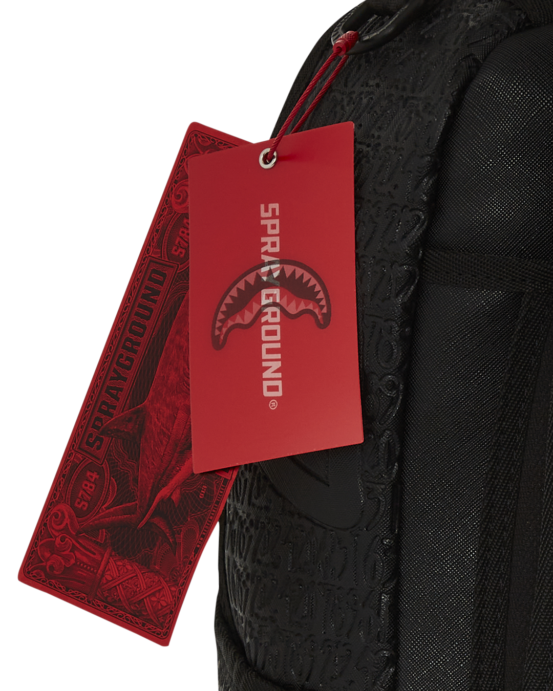 Dimensions: 18" x 6" x 11.5" • Front zipper pocket • Side pockets • Zippered Stash pocket • Separate velour sunglass compartment • Ergonomic mesh back padding • Adjustable Straps for custom sizing • Gold zippers with metal hardware • Metal "Sprayground Authentic" badge • Slide through back sleeve connects to carry-on luggage to free your hands