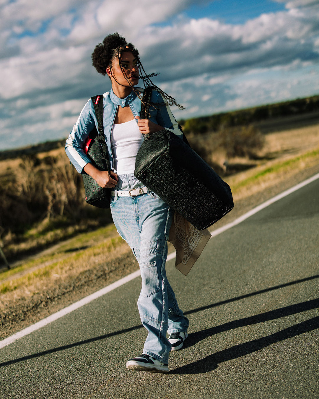 Dimensions: 20" x 10" x 10.75" • Metal zipper pocket• Back Zippers •Zippered sneaker pocket • gold zippers • Adjustable Straps for custom sizing •Metal Zippers with Metal Hardware • bag of Sprayground money