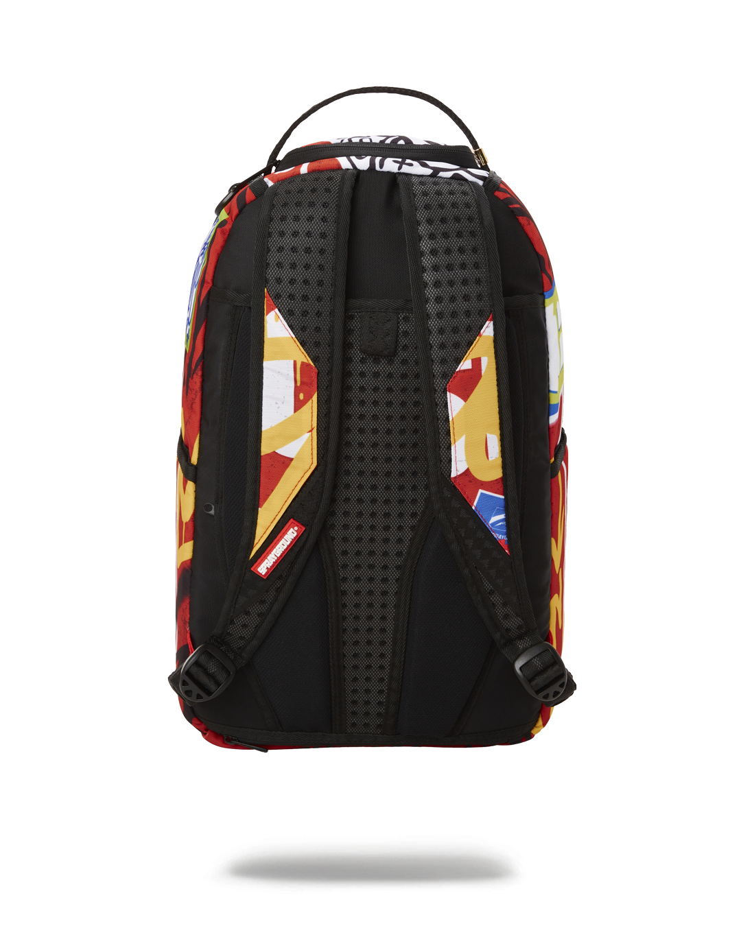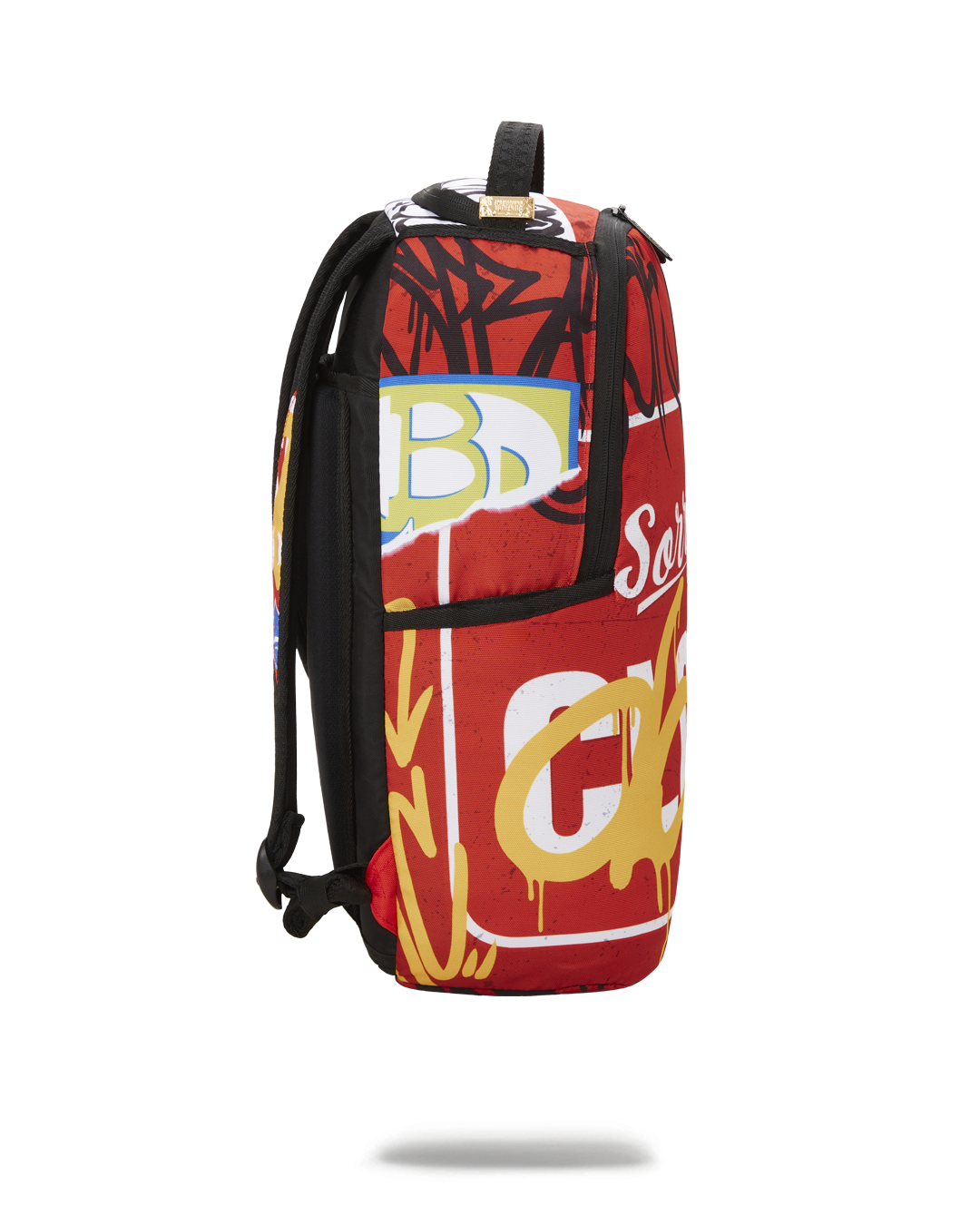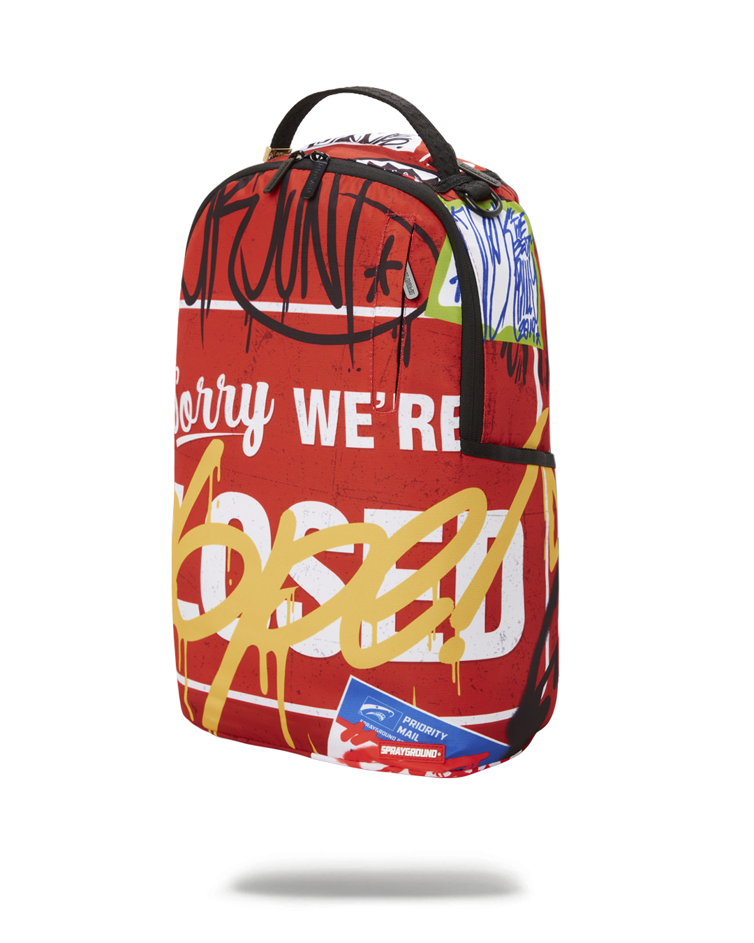 ExteriorDimensions: 18" x 6" x 11.5" • Front zipper pocket • Side pockets • Zippered Stash pocket • Separate velour sunglass compartment • Ergonomic mesh back padding • Adjustable Straps for custom sizing • Green zippers with metal hardware • Metal "Sprayground Authentic" badge • Slide through back sleeve connects to carry on luggage to free your hands