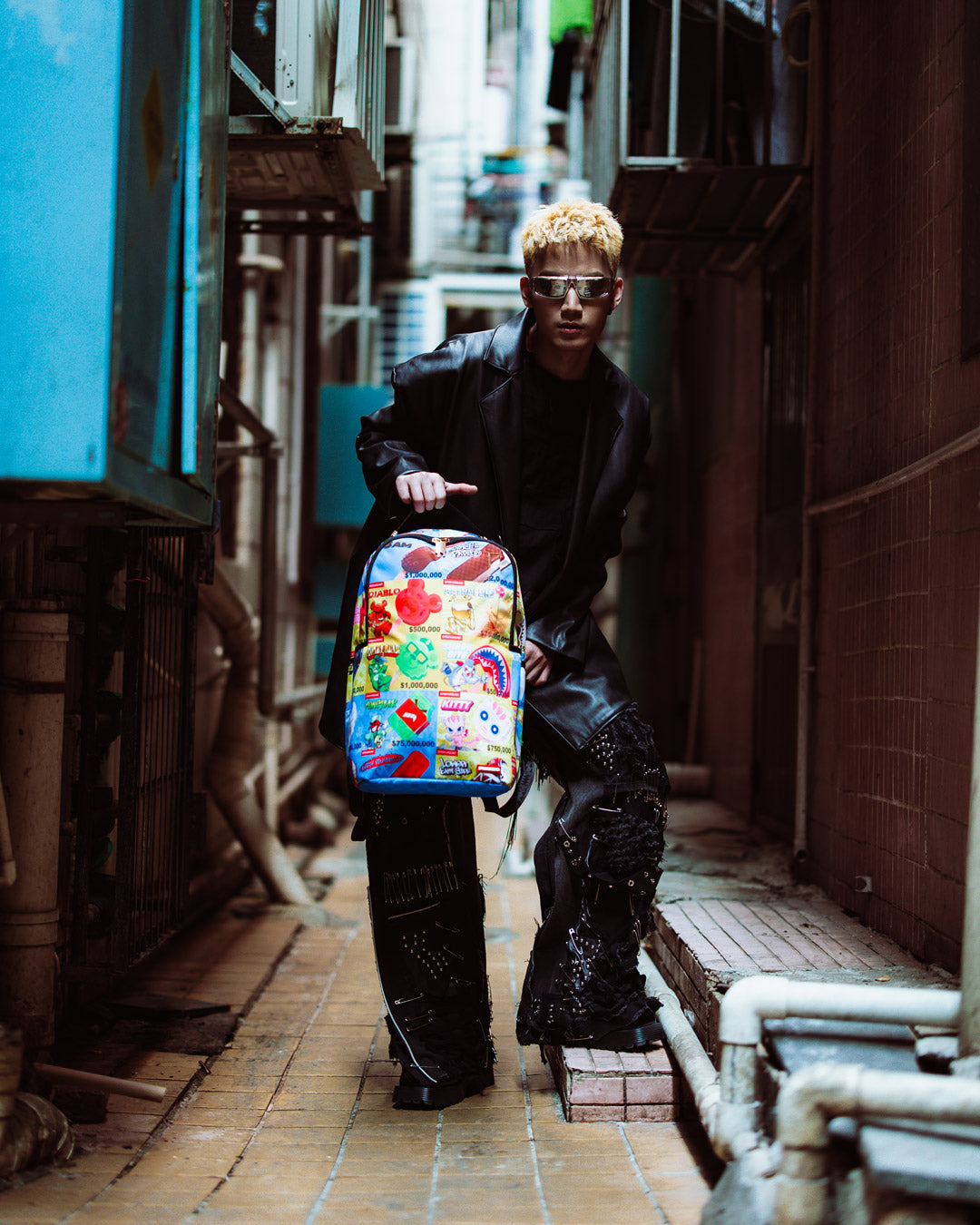 Dimensions: 18" x 6" x 11.5" • Front zipper pocket • Side pockets • Zippered Stash pocket • Separate velour sunglass compartment • Ergonomic mesh back padding • Adjustable Straps for custom sizing • Gold zippers with metal hardware • Metal "Sprayground Authentic" badge • Slide through back sleeve connects to carry-on luggage to free your hands