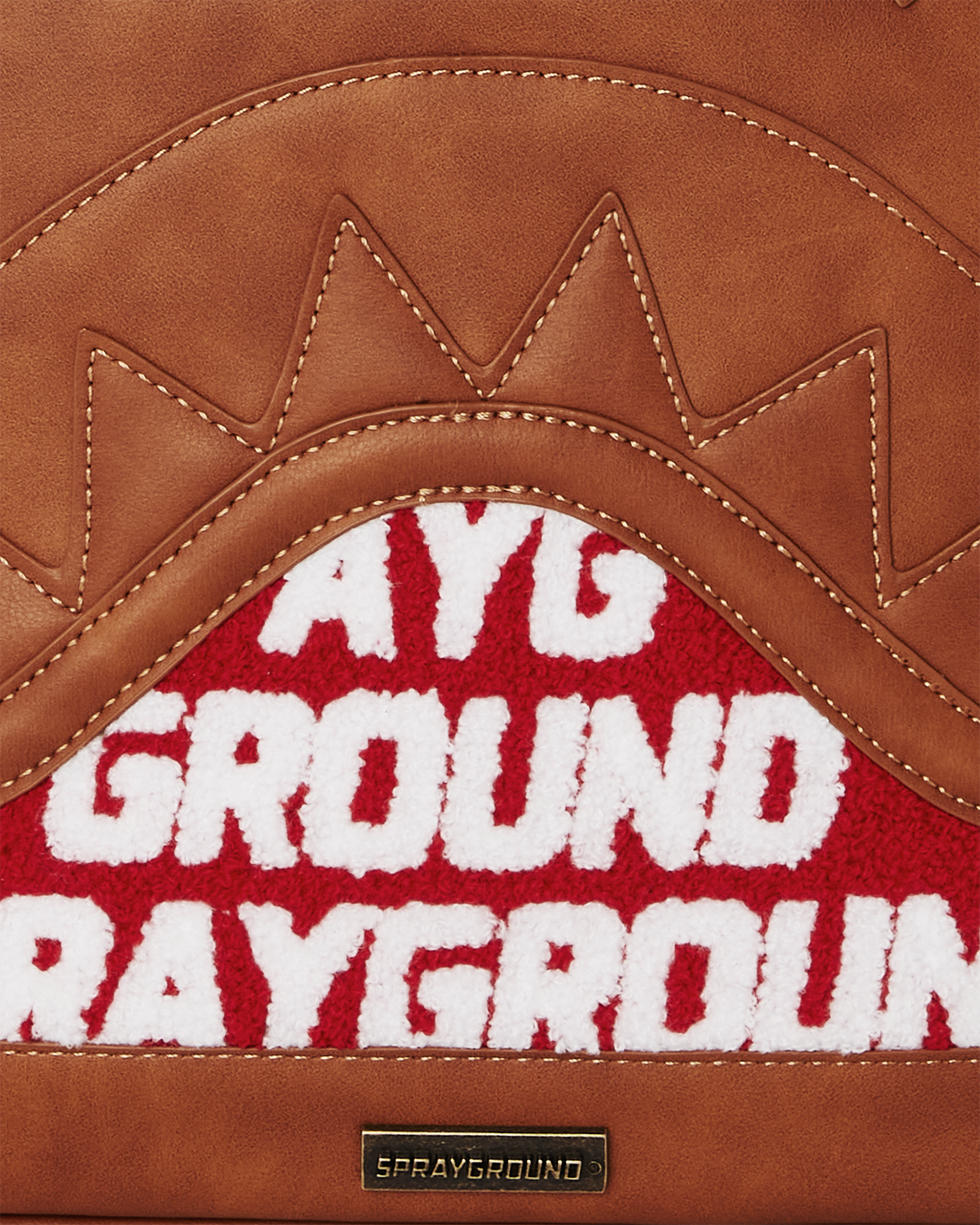 Dimensions: 18" x 6" x 11.5" • Front zipper pocket • Side pockets • Zippered Stash pocket • Separate velour sunglass compartment • Ergonomic mesh back padding • Adjustable Straps for custom sizing • Gold zippers with metal hardware • Metal "Sprayground Authentic" badge • Slide through back sleeve connects to carry-on luggage to free your hands