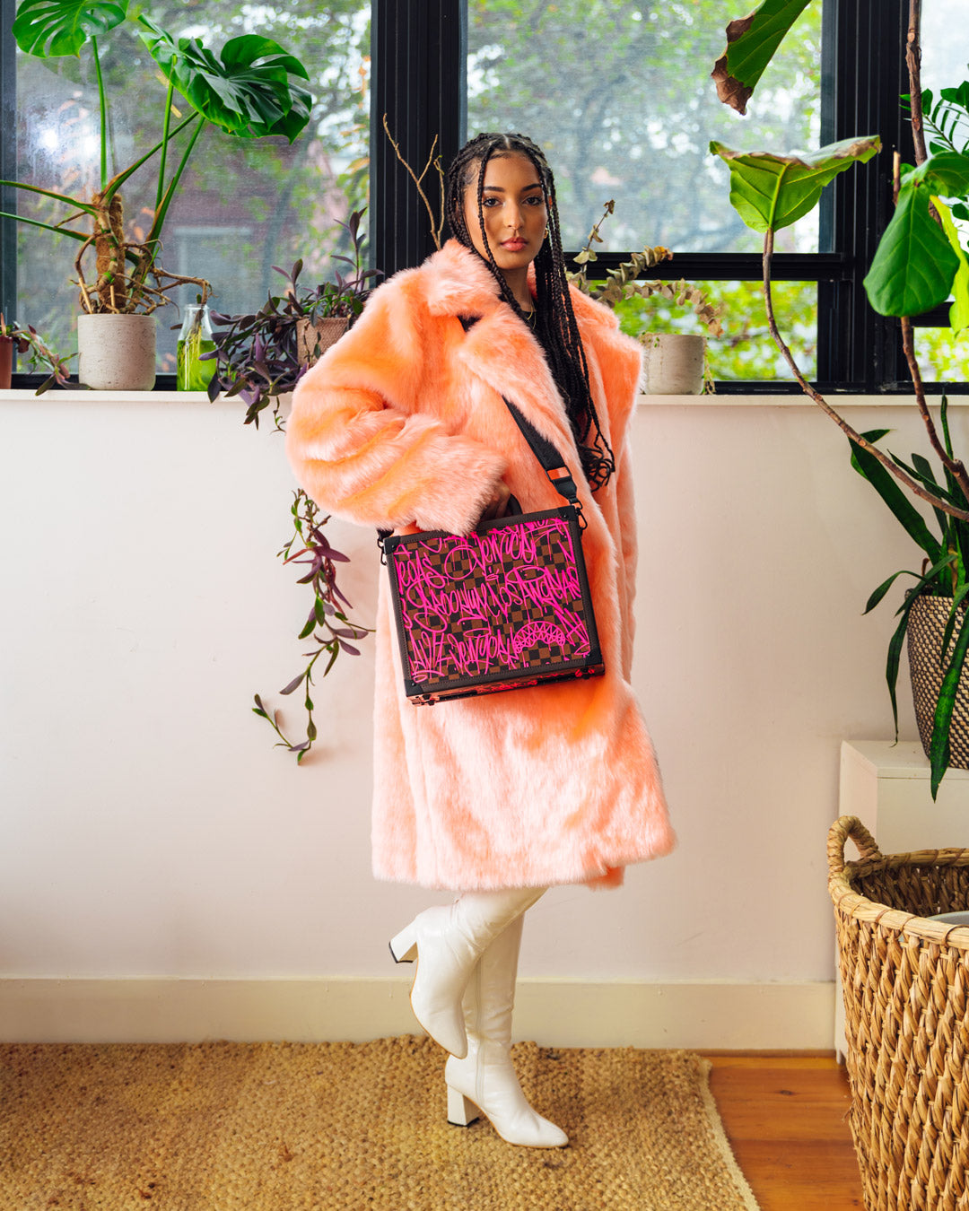 Customized Red Satin lining with Embossed Shark logo and Vegan leather trims