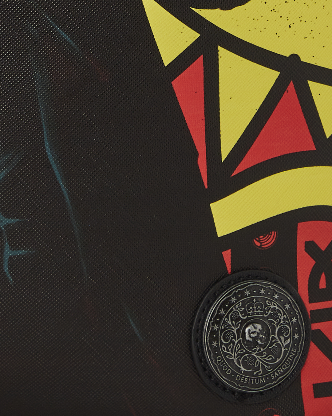 Dimensions: 18" x 6" x 11.5" • Front zipper pocket • Side pockets • Zippered Stash pocket • Separate velour sunglass compartment • Ergonomic mesh back padding • Adjustable Straps for custom sizing • Gold zippers with metal hardware • Metal "Sprayground Authentic" badge • Slide through back sleeve connects to carry-on luggage to free your hands