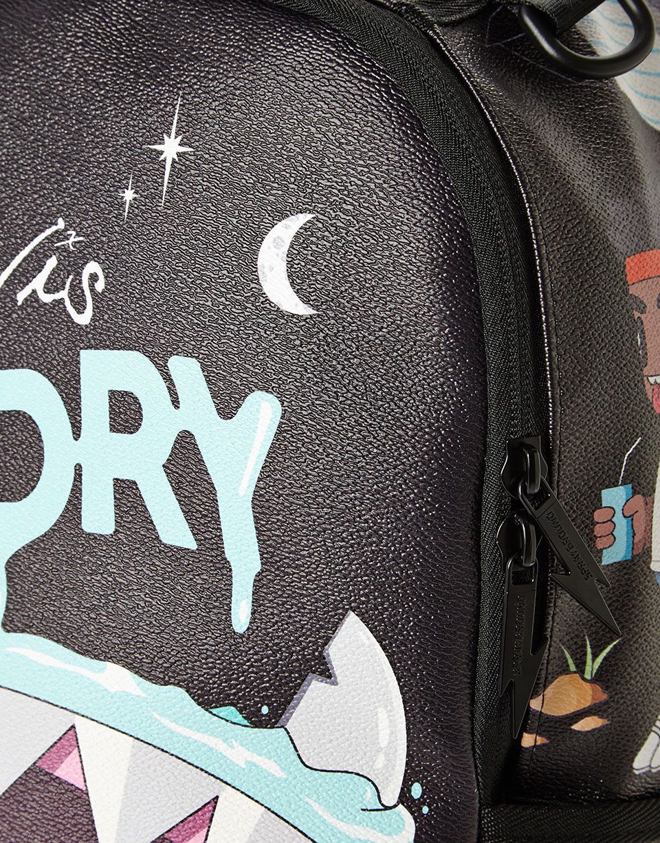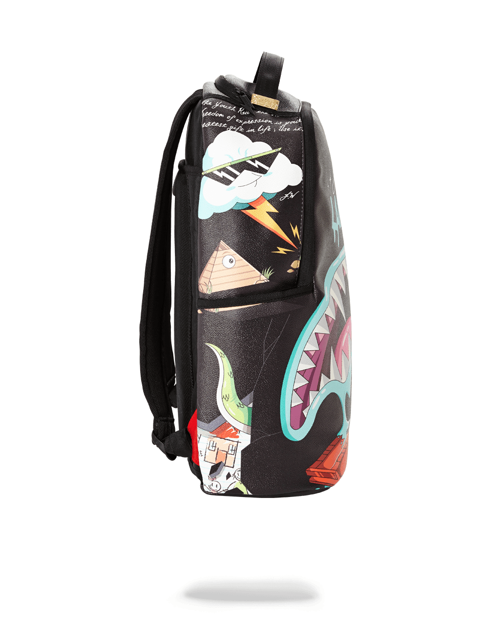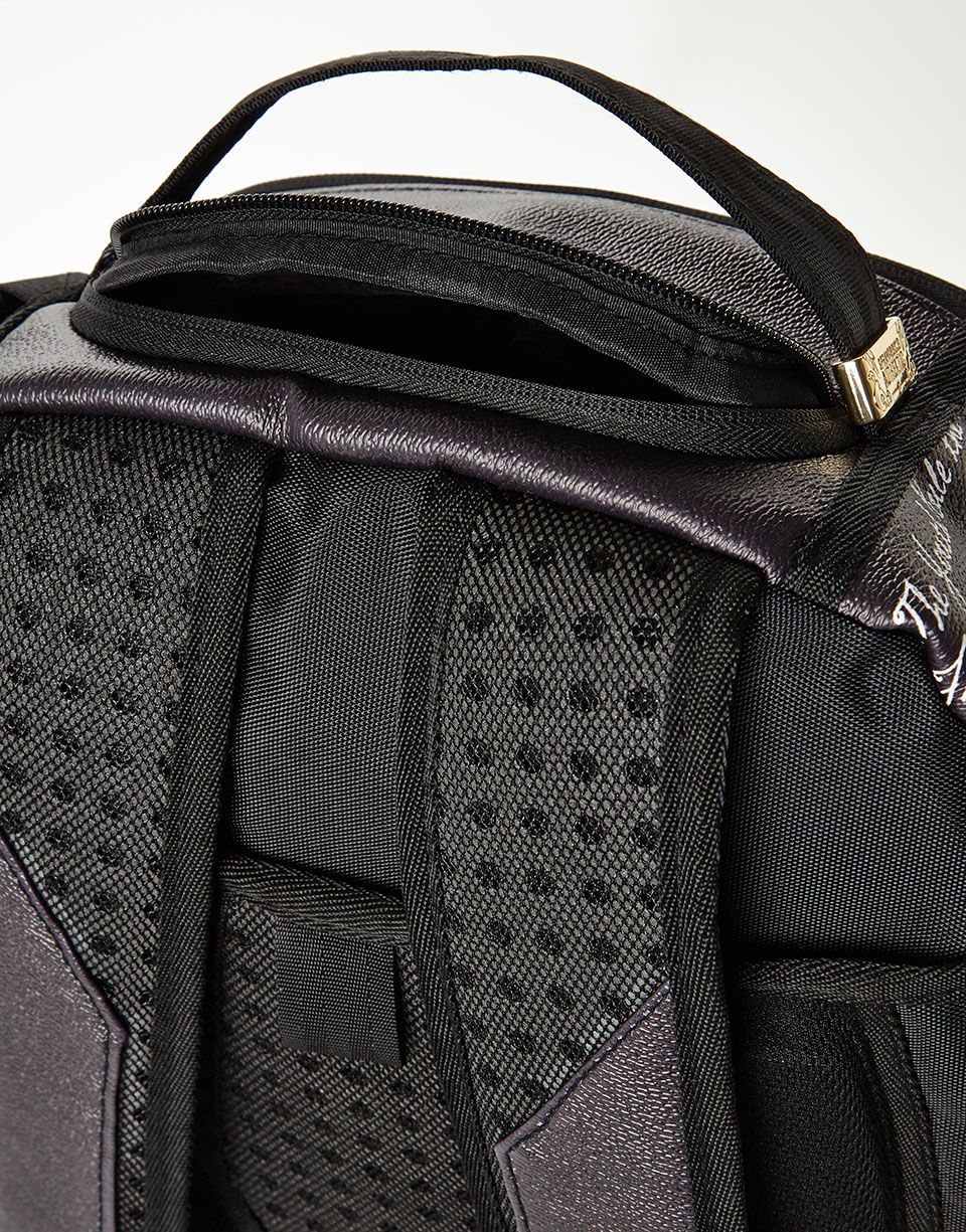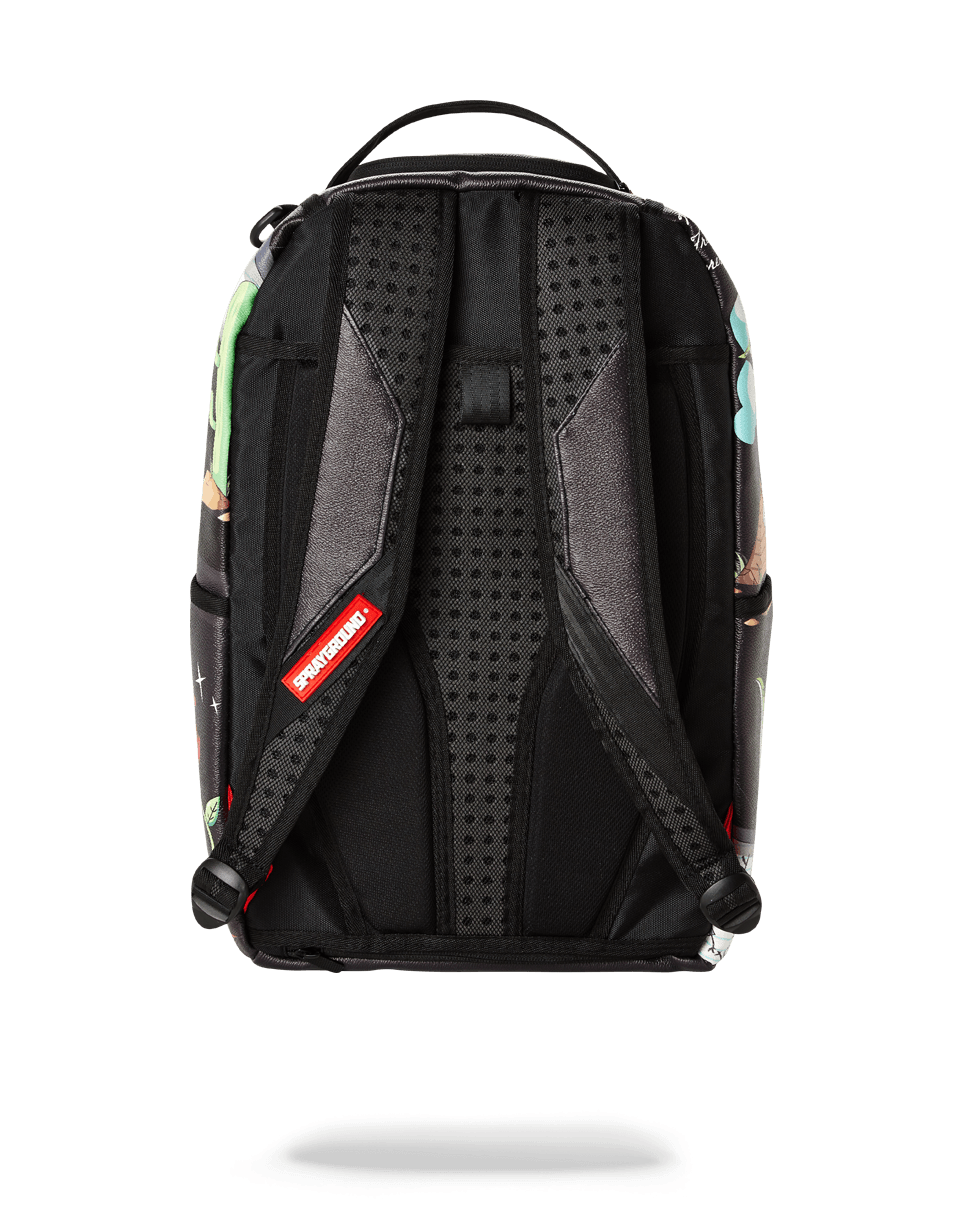 ExteriorDimensions: 18" x 6" x 11.5" ∙ Front zipper pocket ∙ Side pockets ∙ Zippered Stash pocket ∙ Ergonomic mesh back padding ∙ Adjustable Straps for custom sizing ∙ Nylon Zippers with Metal Hardware ∙ Metal "Sprayground Authentic" badge ∙ Slide through back sleeve connects to Carry on luggage to free your hands