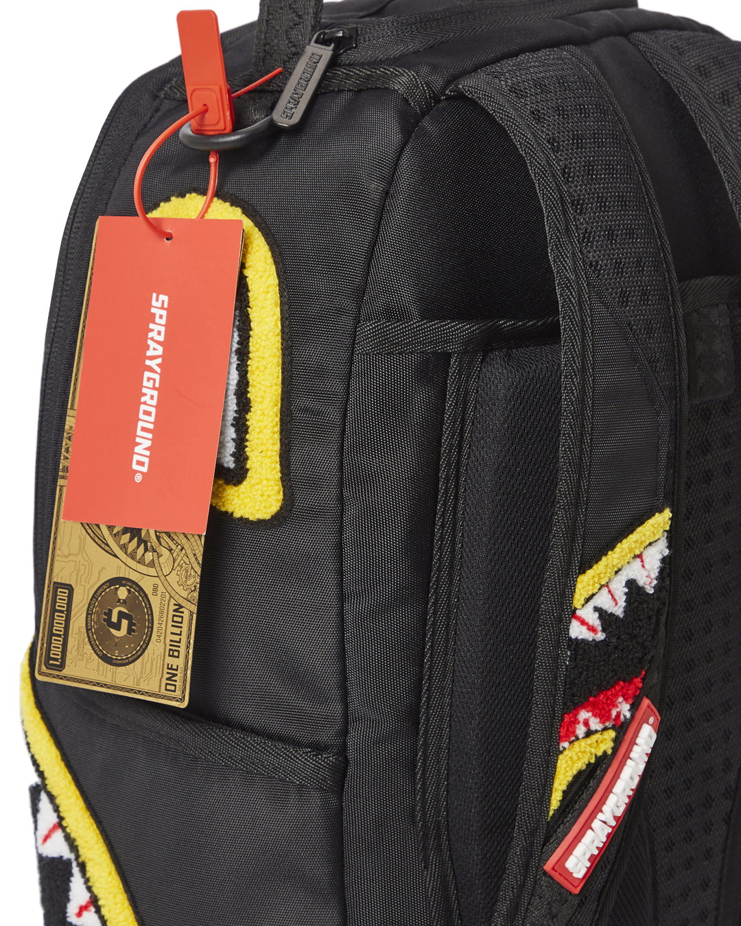 ExteriorDimensions: 18" x 6" x 11.5" ∙ Front zipper pocket ∙ Side pockets ∙ Zippered Stash pocket ∙ Ergonomic mesh back padding ∙ Adjustable Straps for custom sizing ∙ Nylon Zippers with Metal Hardware ∙ Metal "Sprayground Authentic" badge ∙ Slide through back sleeve connects to Carry on luggage to free your hands