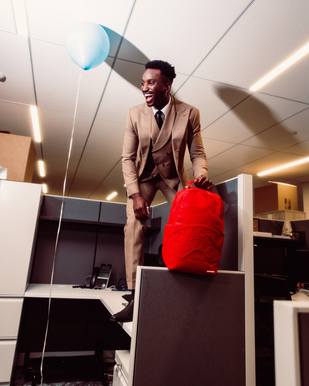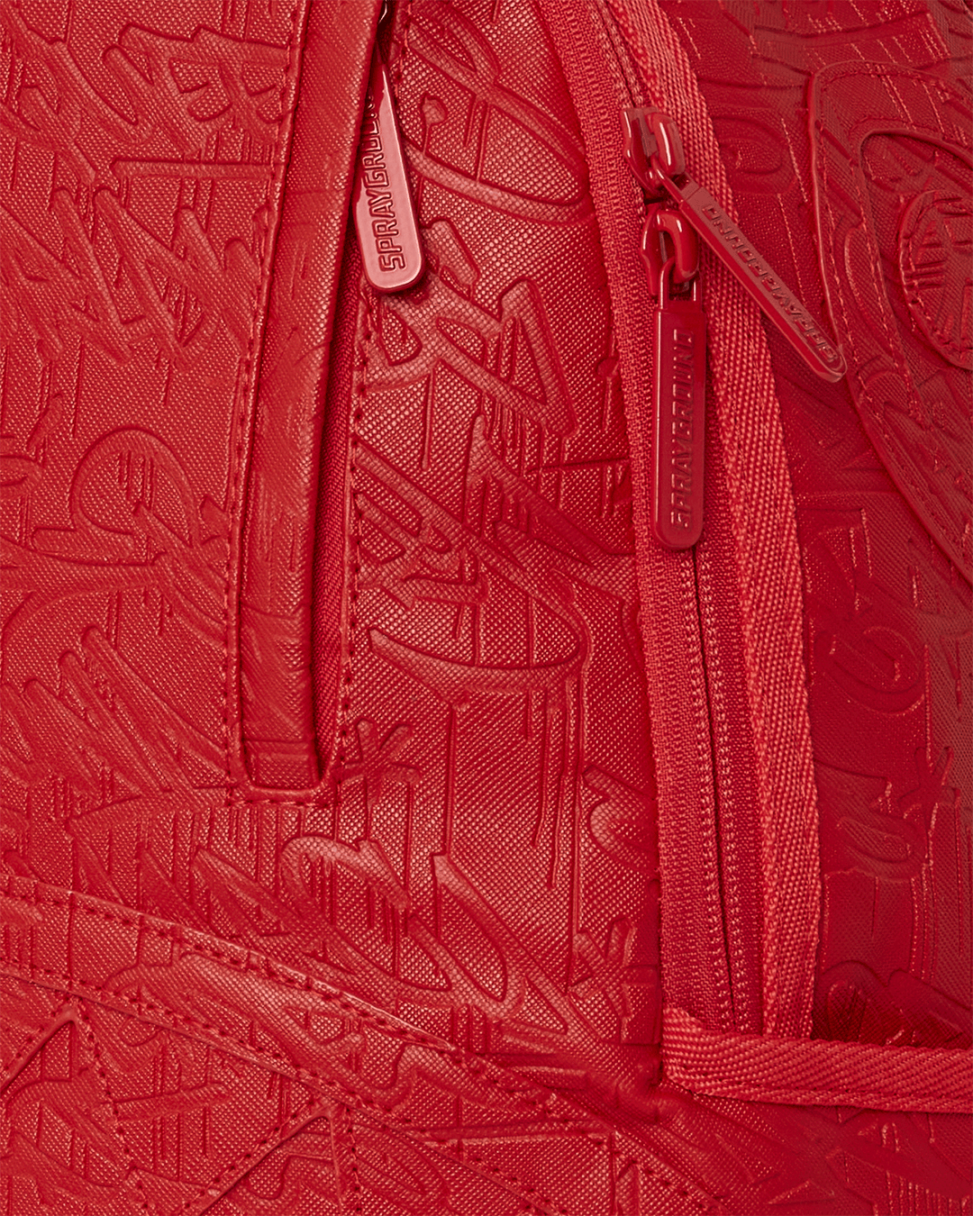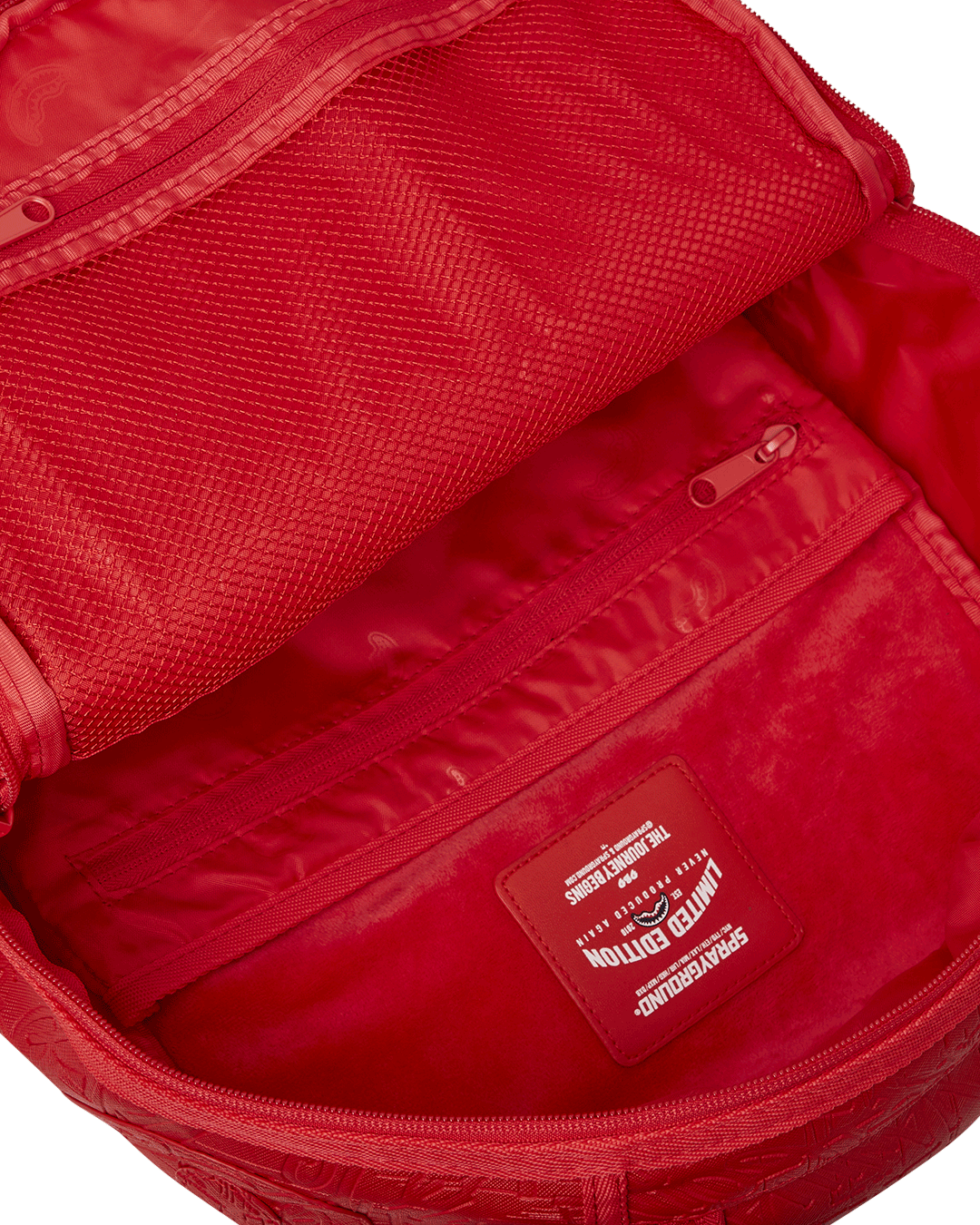 Dimensions: 18" x 6" x 11.5" • Front zipper pocket • Side pockets • Zippered Stash pocket • Separate velour sunglass compartment • Ergonomic mesh back padding • Adjustable Straps for custom sizing • Gold zippers with metal hardware • Metal "Sprayground Authentic" badge • Slide through back sleeve connects to carry-on luggage to free your hands