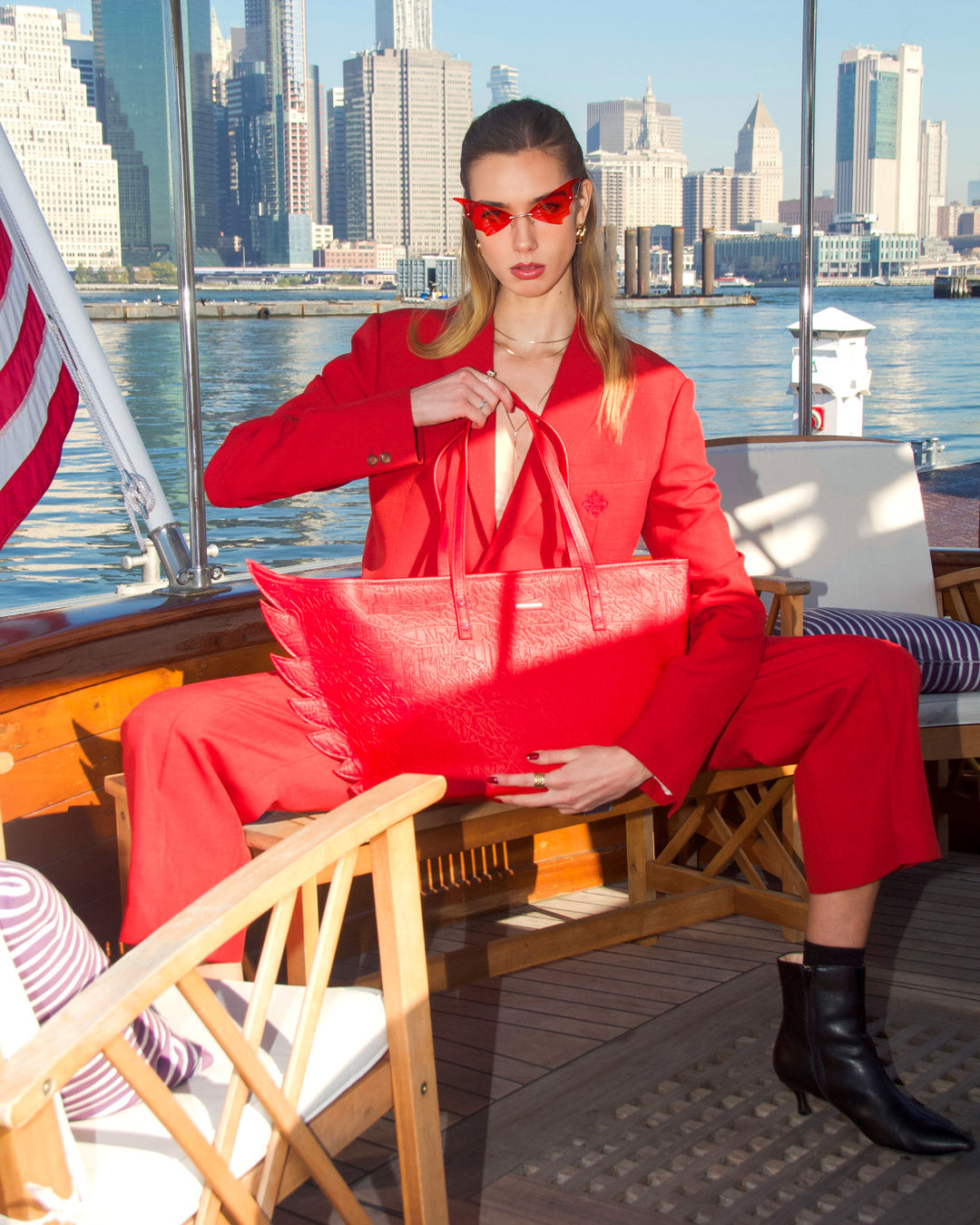 Wing shape detail, Zipper Closure, Gunmetal Hardware Details