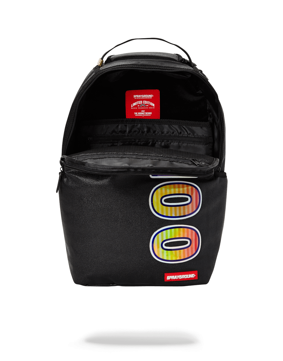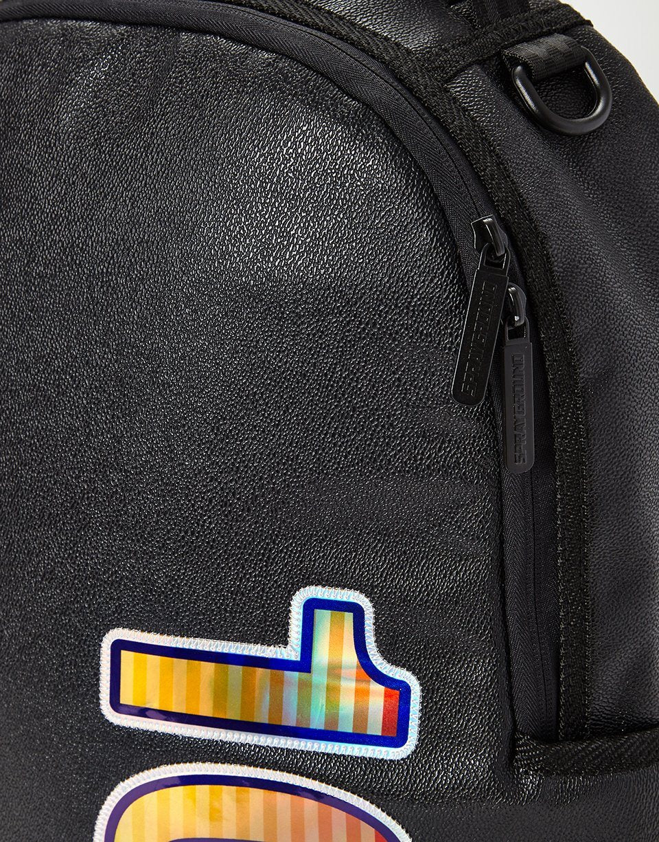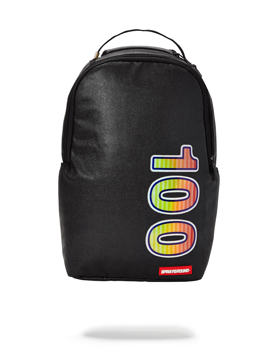 ExteriorDimensions: 18" x 6" x 11.5" ∙ Front zipper pocket ∙ Side pockets ∙ Zippered Stash pocket ∙ Ergonomic mesh back padding ∙ Adjustable Straps for custom sizing ∙ Nylon Zippers with Metal Hardware ∙ Metal "Sprayground Authentic" badge ∙ Slide through back sleeve connects to Carry on luggage to free your hands