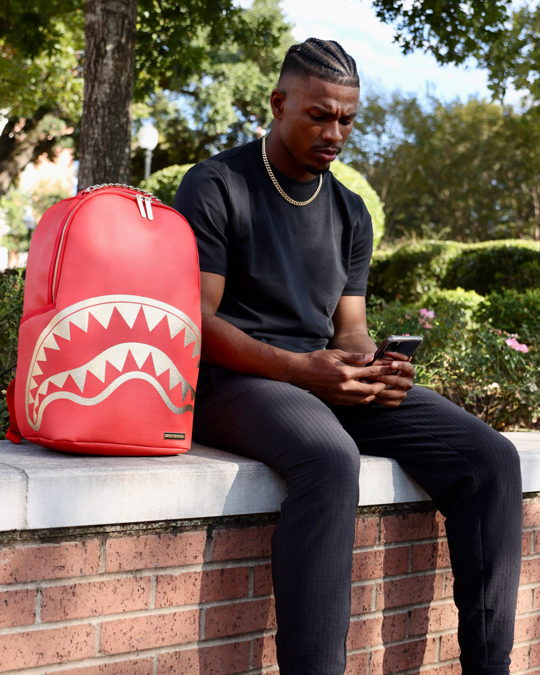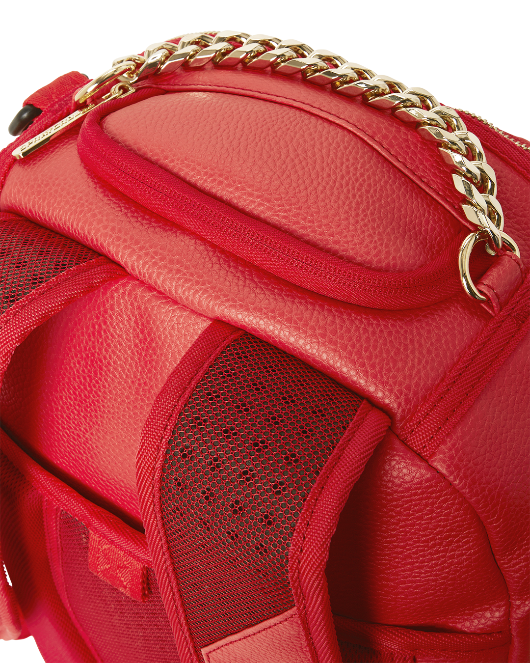 Dimensions: 18" x 6" x 11.5" • Front zipper pocket • Side pockets • Zippered Stash pocket • Separate velour sunglass compartment • Ergonomic mesh back padding • Adjustable Straps for custom sizing • Gold zippers with metal hardware • Metal "Sprayground Authentic" badge • Slide through back sleeve connects to carry-on luggage to free your hands