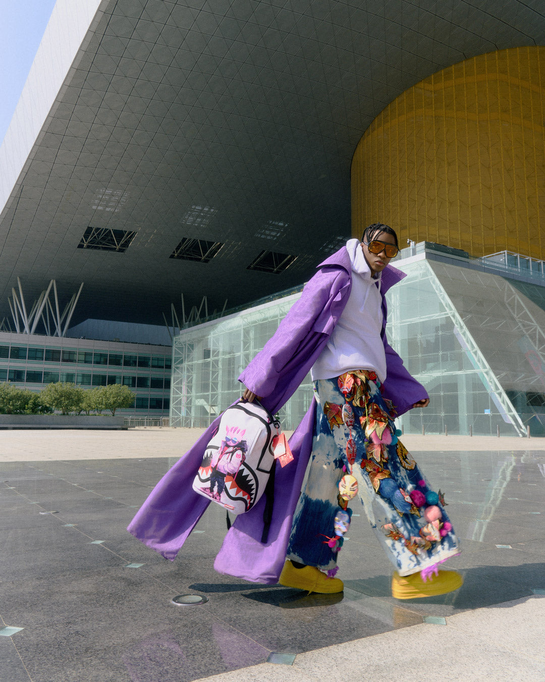Dimensions: 18" x 6" x 11.5" • Front zipper pocket • Side pockets • Zippered Stash pocket • Separate velour sunglass compartment • Ergonomic mesh back padding • Adjustable Straps for custom sizing • Gold zippers with metal hardware • Metal "Sprayground Authentic" badge • Slide through back sleeve connects to carry-on luggage to free your hands