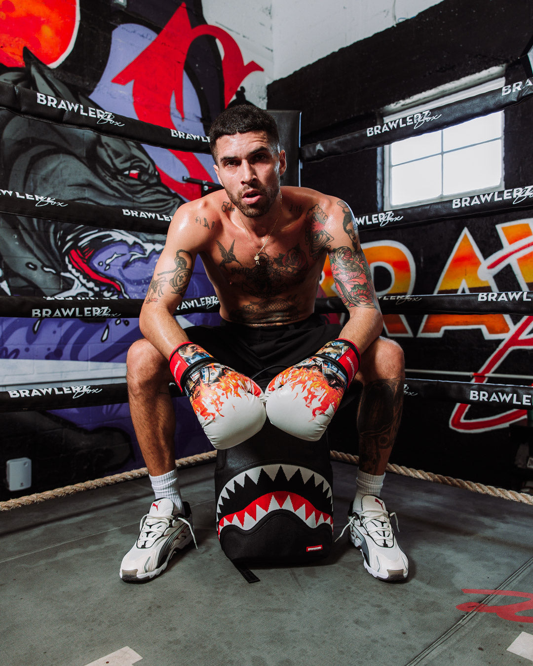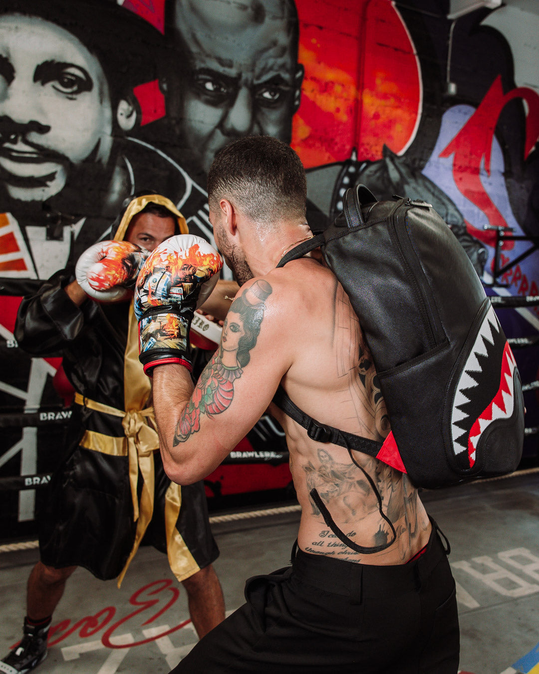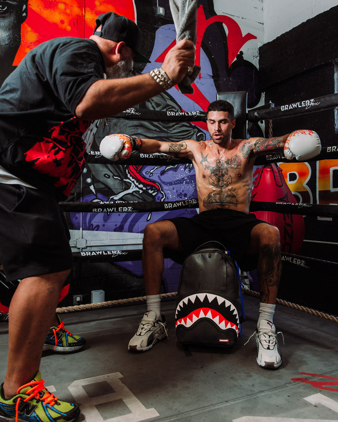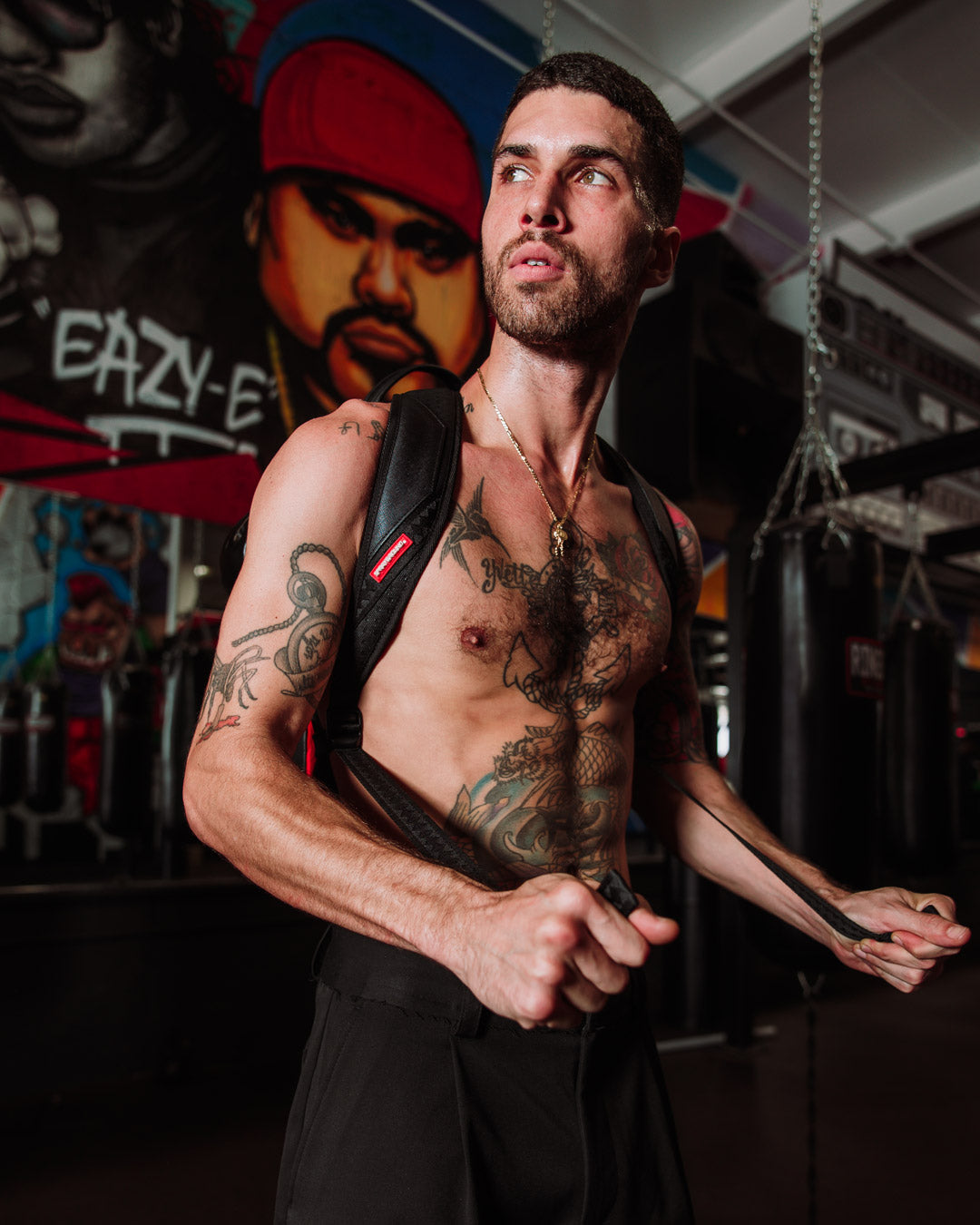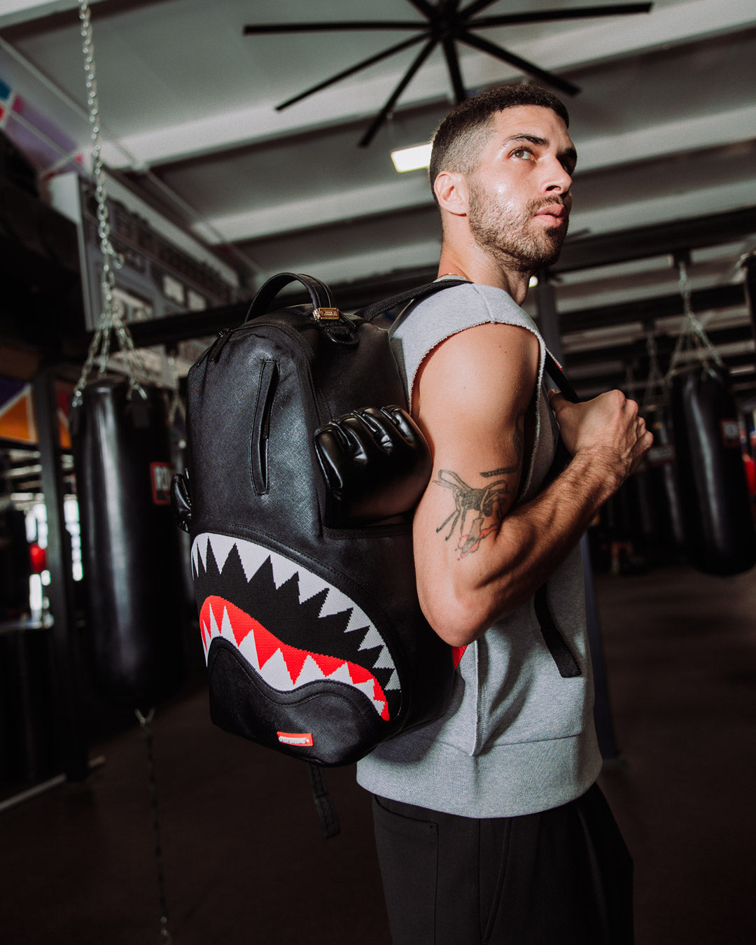 Dimensions: 18" x 6" x 11.5" • Front zipper pocket • Side pockets • Zippered Stash pocket • Separate velour sunglass compartment • Ergonomic mesh back padding • Adjustable Straps for custom sizing • Gold zippers with metal hardware • Metal "Sprayground Authentic" badge • Slide through back sleeve connects to carry-on luggage to free your hands