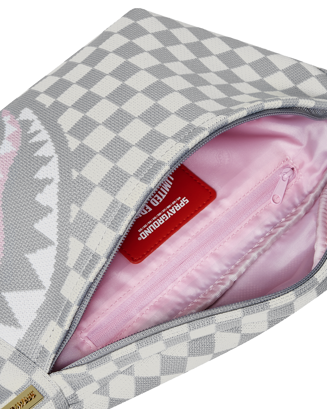 100% Polyester fly knit in our signature sharks in Paris check pattern & sharkmouth